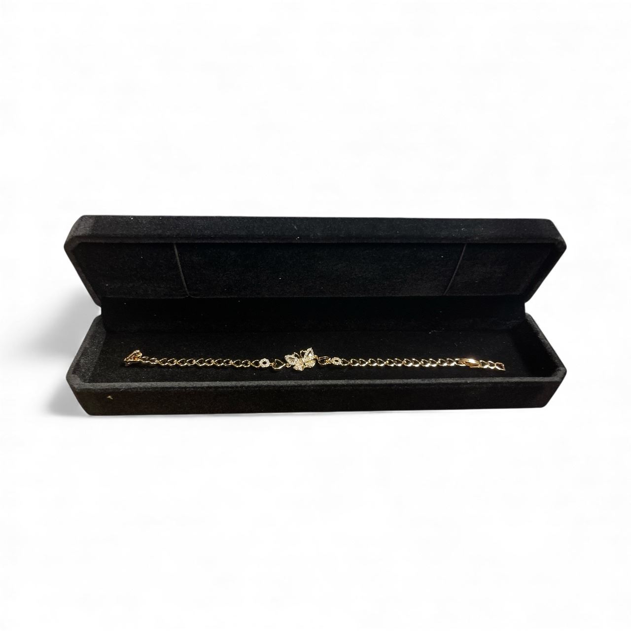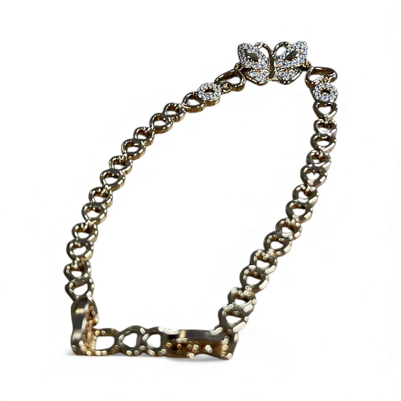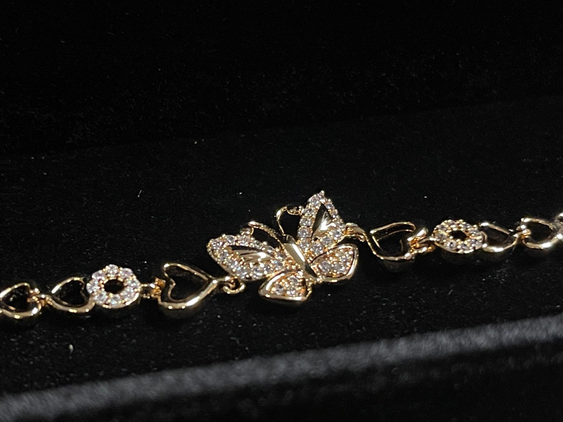 New 18K Gold Plated Heart Butterfly Simulated Diamond (CZ) Bracelet - Adjustable 6.75"-7.5" Long w/Case