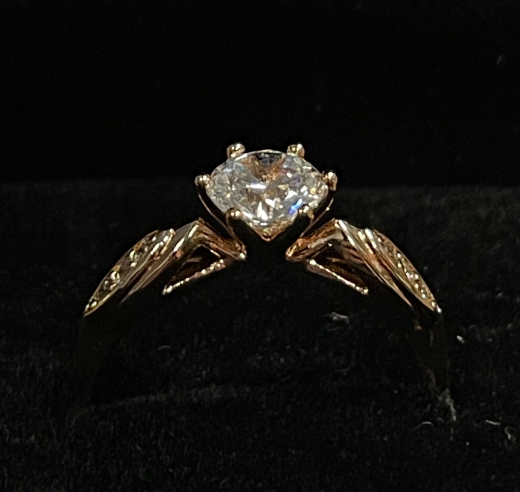 New 18k Gold Plated 0.8 Simulated Diamond (CZ) Chanel Ring - Size 7 w/Case