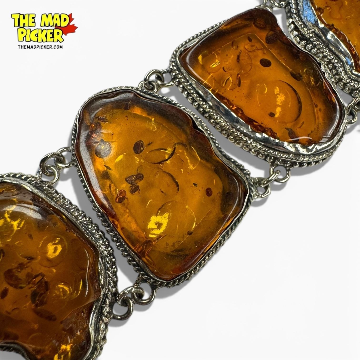 New 2" Wide Amber Resin Toggle Clasp Bracelet in Silver Setting (stamped .925 Sterling )