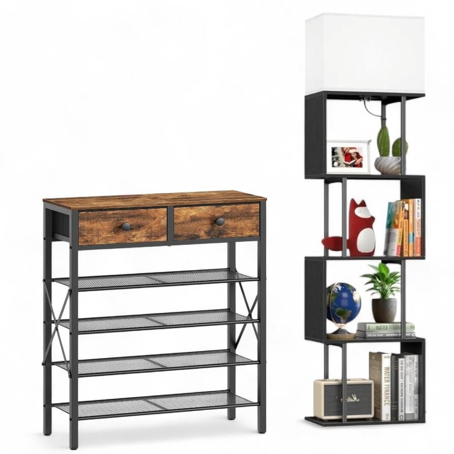 New 5 Tier Shoe Rack, Large Capacity Shoe Storage Organizer, Metal Shoe Shelf with Drawer and Wooden Top, for 16 Pairs of Shoes, for Entryway, Closet, Rustic Brown and Black SS25B Retail $90