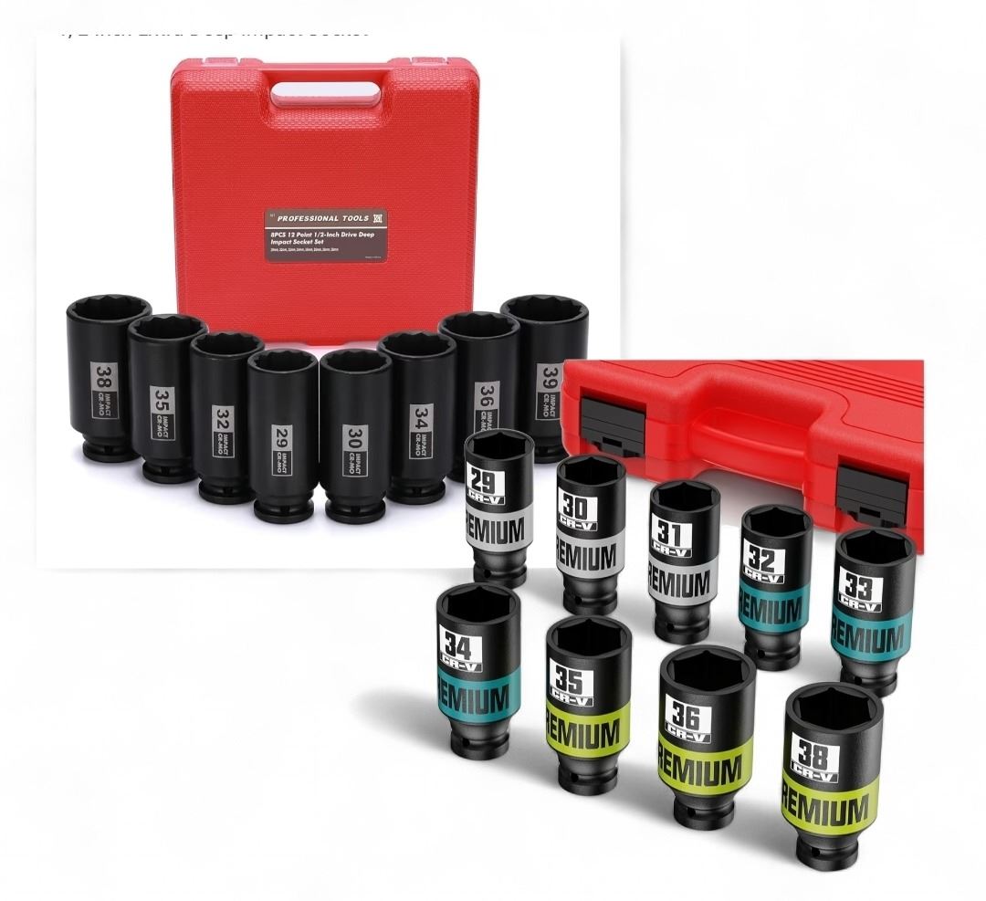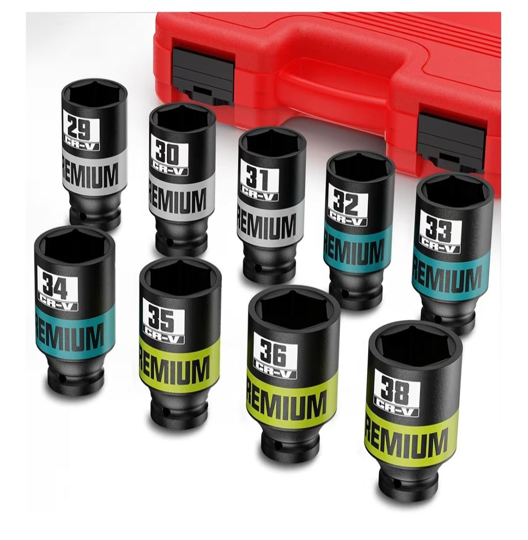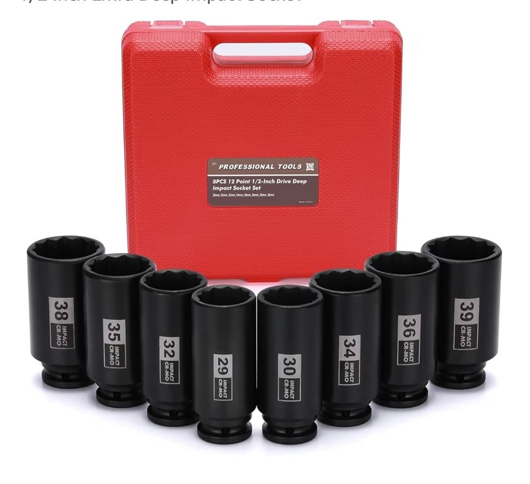 New 9 Piece 1/2" Drive Impact Socket Set, Metric Axle Nut Sockets Retail $65 & Mayouko 8PCS 1/2" Drive Deep Axle Nut Spindle Impact Socket Set Retail $45.97
