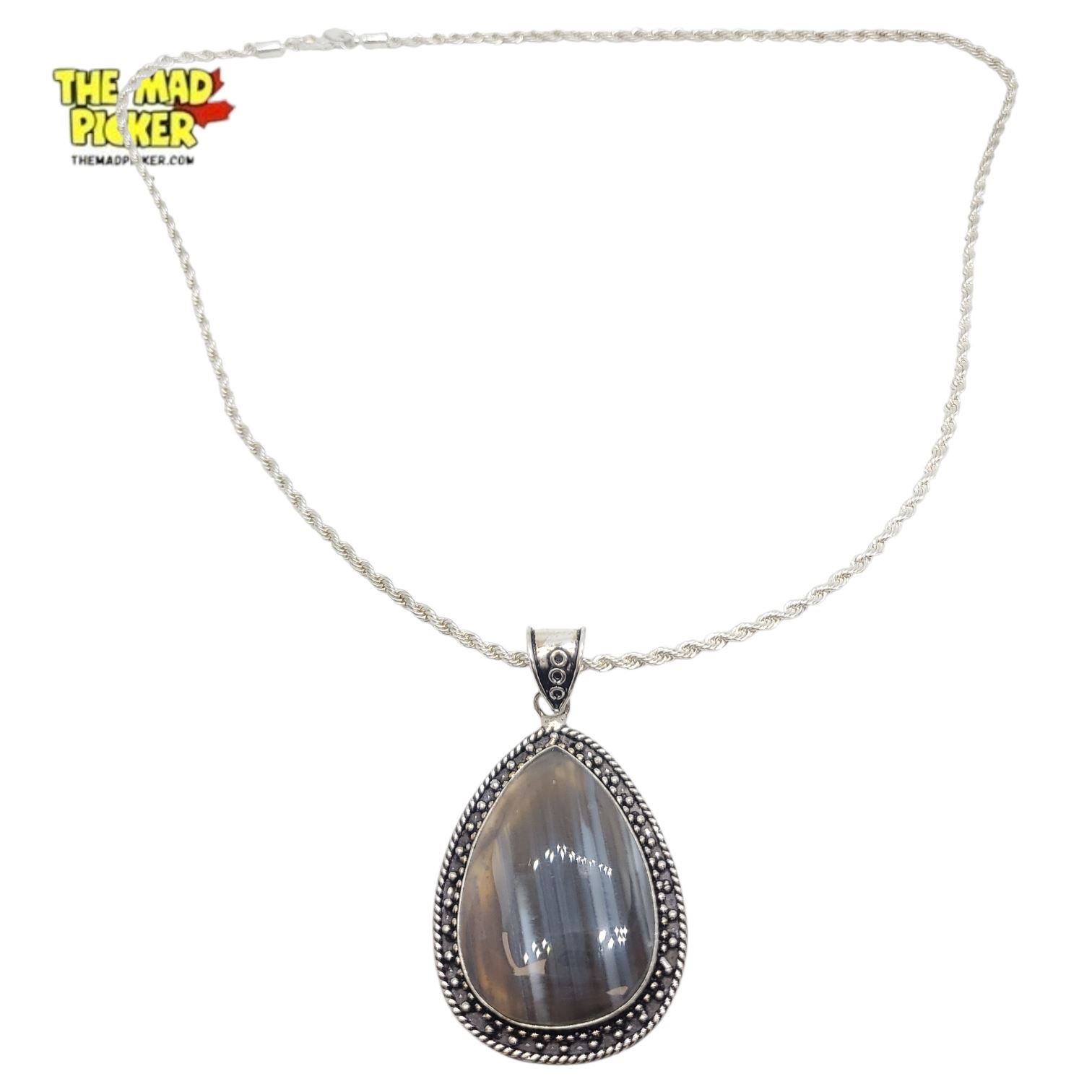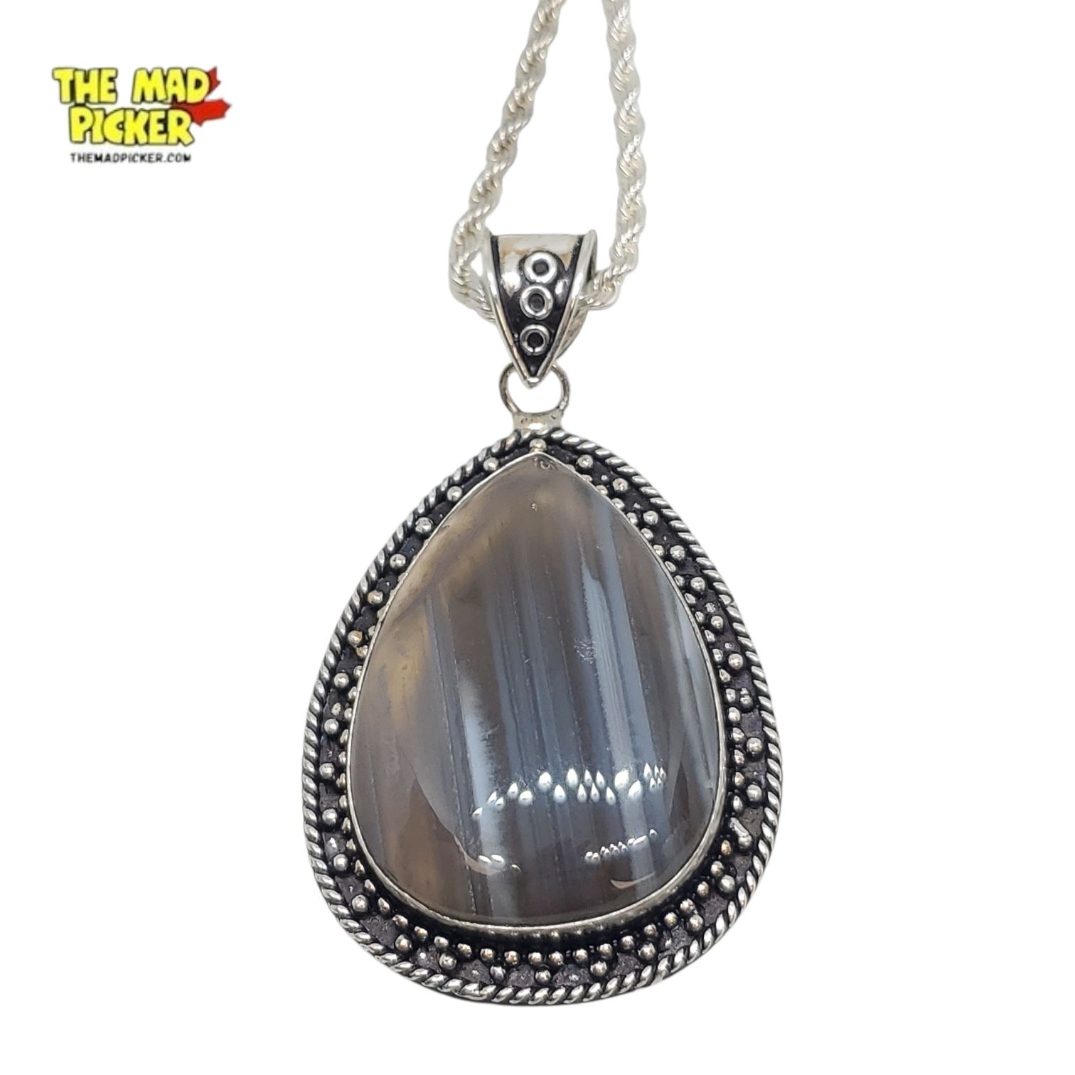 New .925 Sterling Silver Botswana Banded Agate Pendant Necklace (41 x 52mm teardrop pendant on a 24" chain) Total weight: 38.2 grams