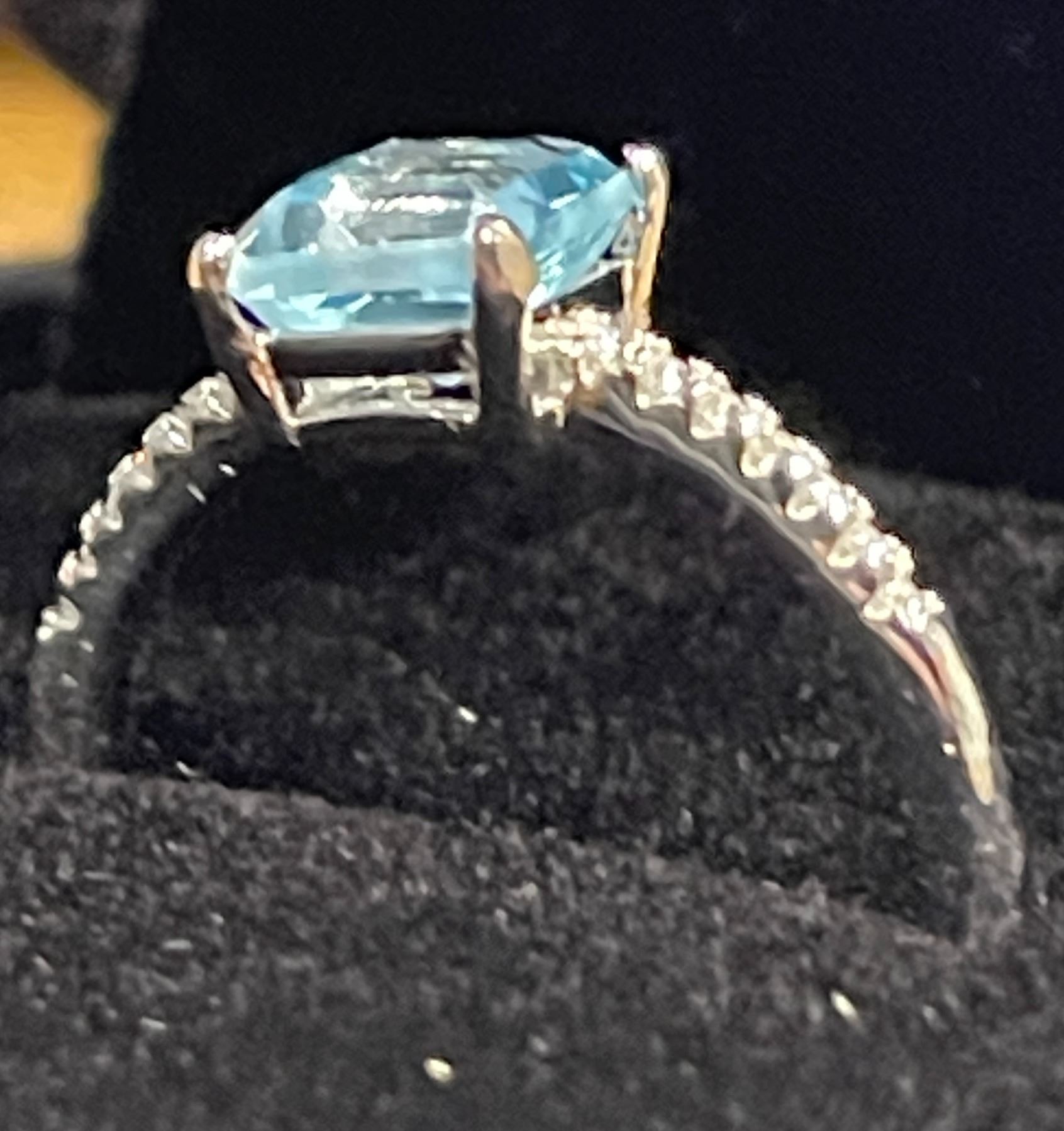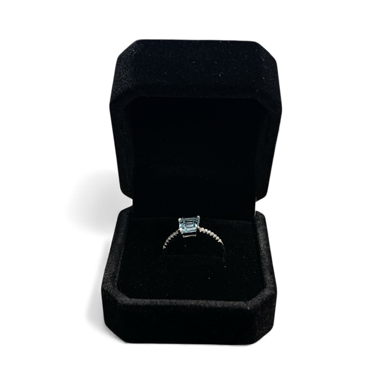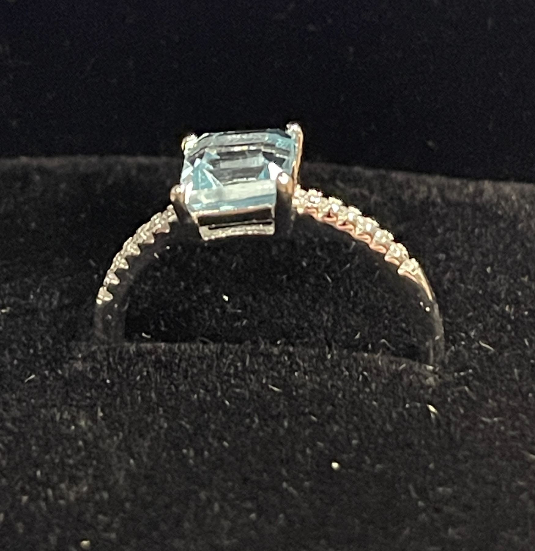 New 925S 1.0ct Princess Cut Natural Swiss Blue Topaz Chanel Ring - Resizable - Mounted in 925 Sterling Silver with White Gold Overlay w/Case