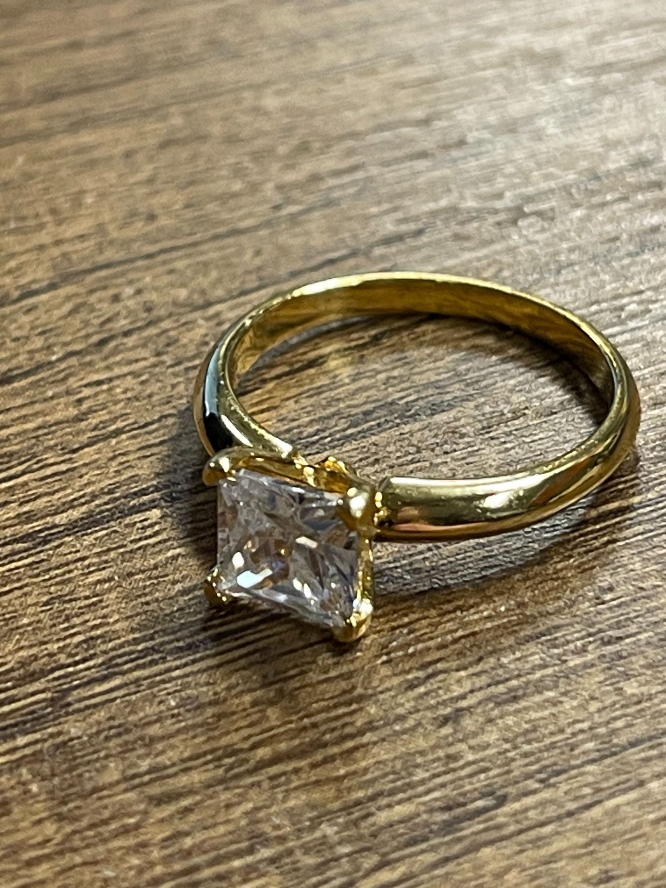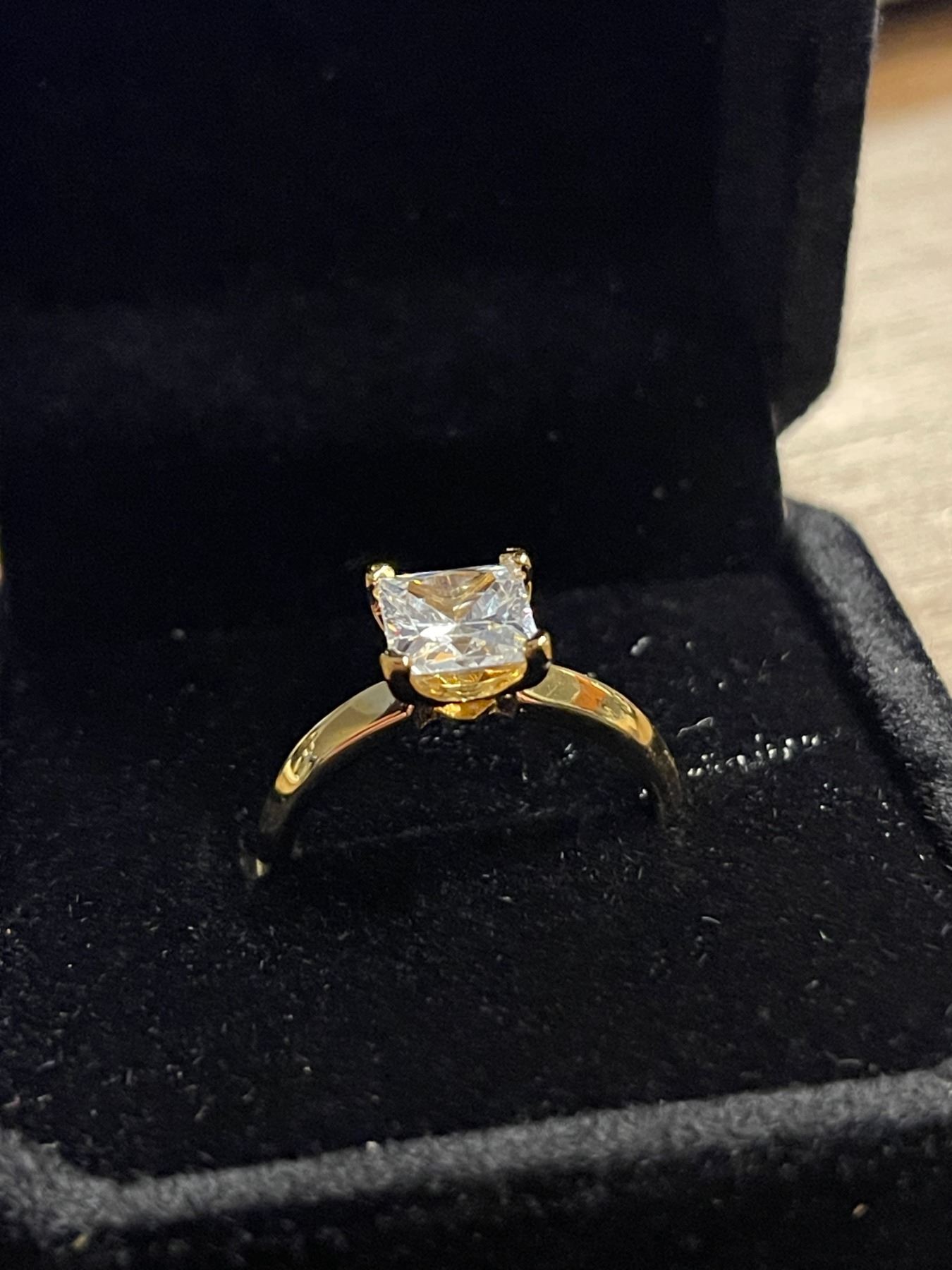 New 925S 1.25ct Princess Cut Simulated Diamond (CZ) Solitaire Ring - Size 7.0 Mounted in 925 Sterling Silver with 18k Gold Overlay w/Case