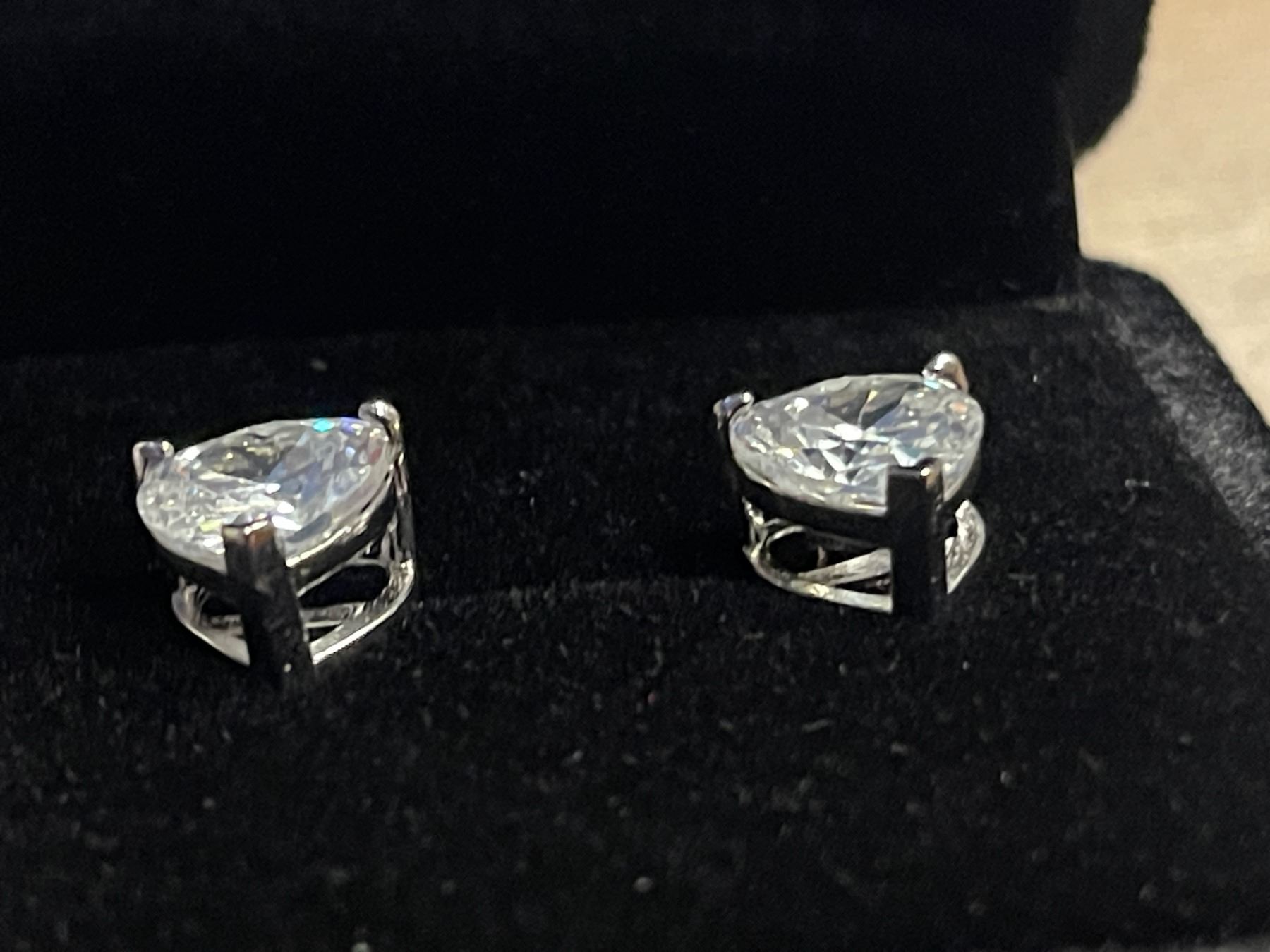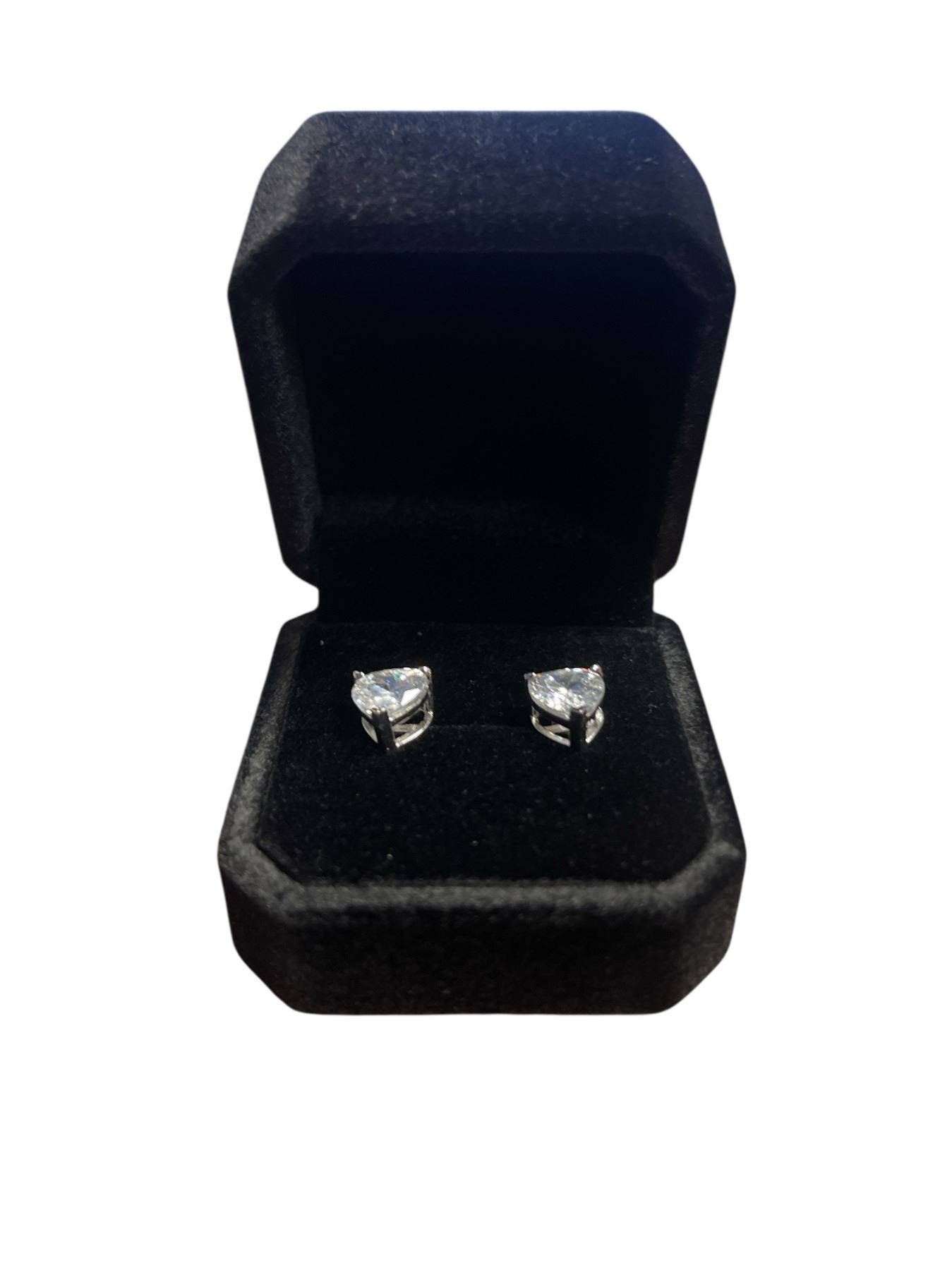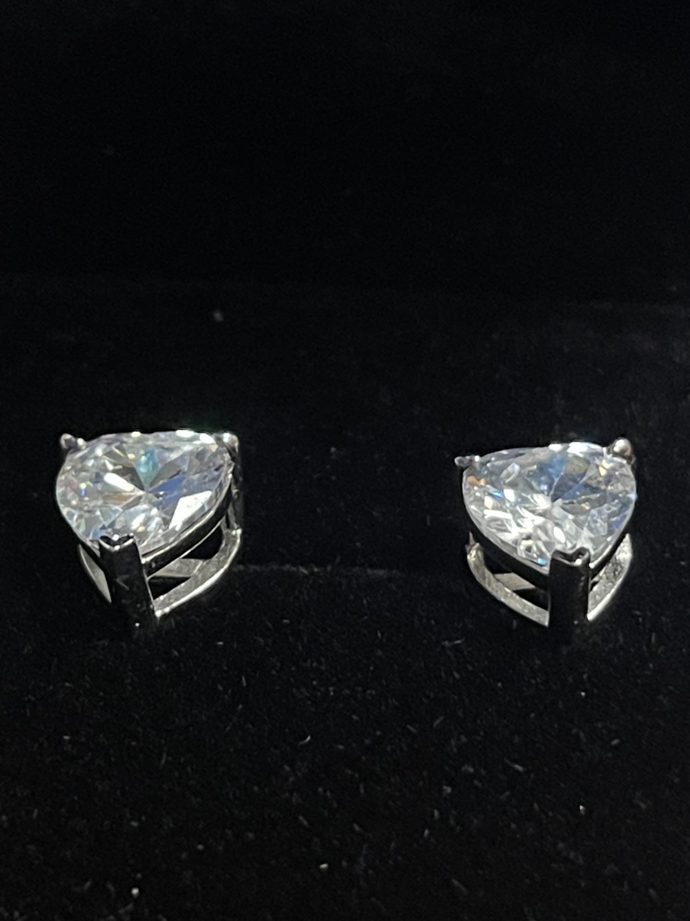 New 925S 2.0ct Each Heart Cut Simulated Diamond (CZ) Stud Earrings - Mounted in 925 Sterling Silver with White Gold Overlay