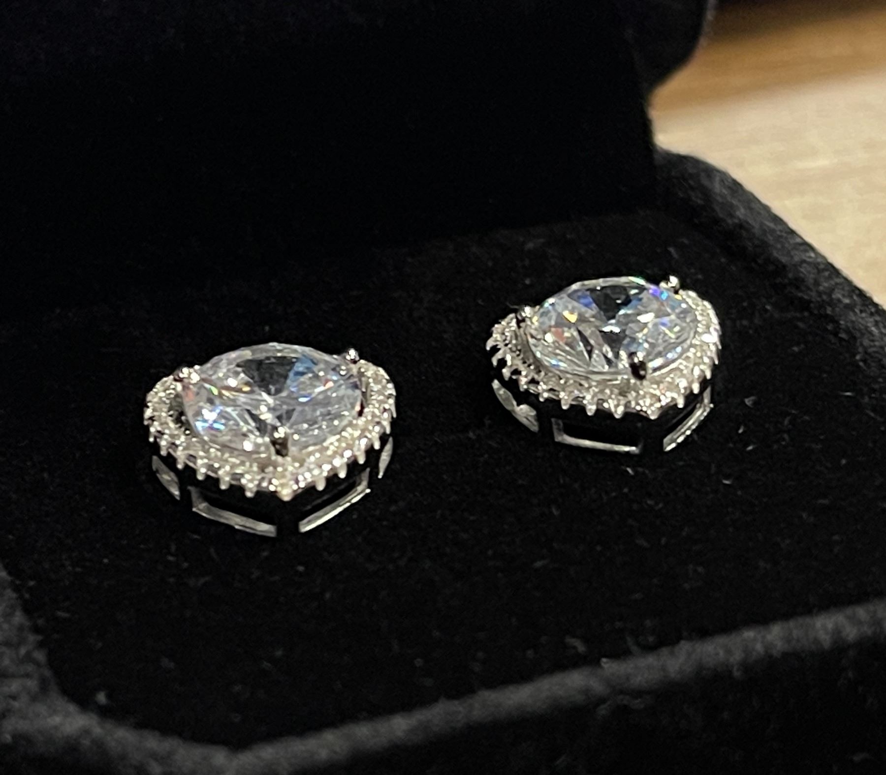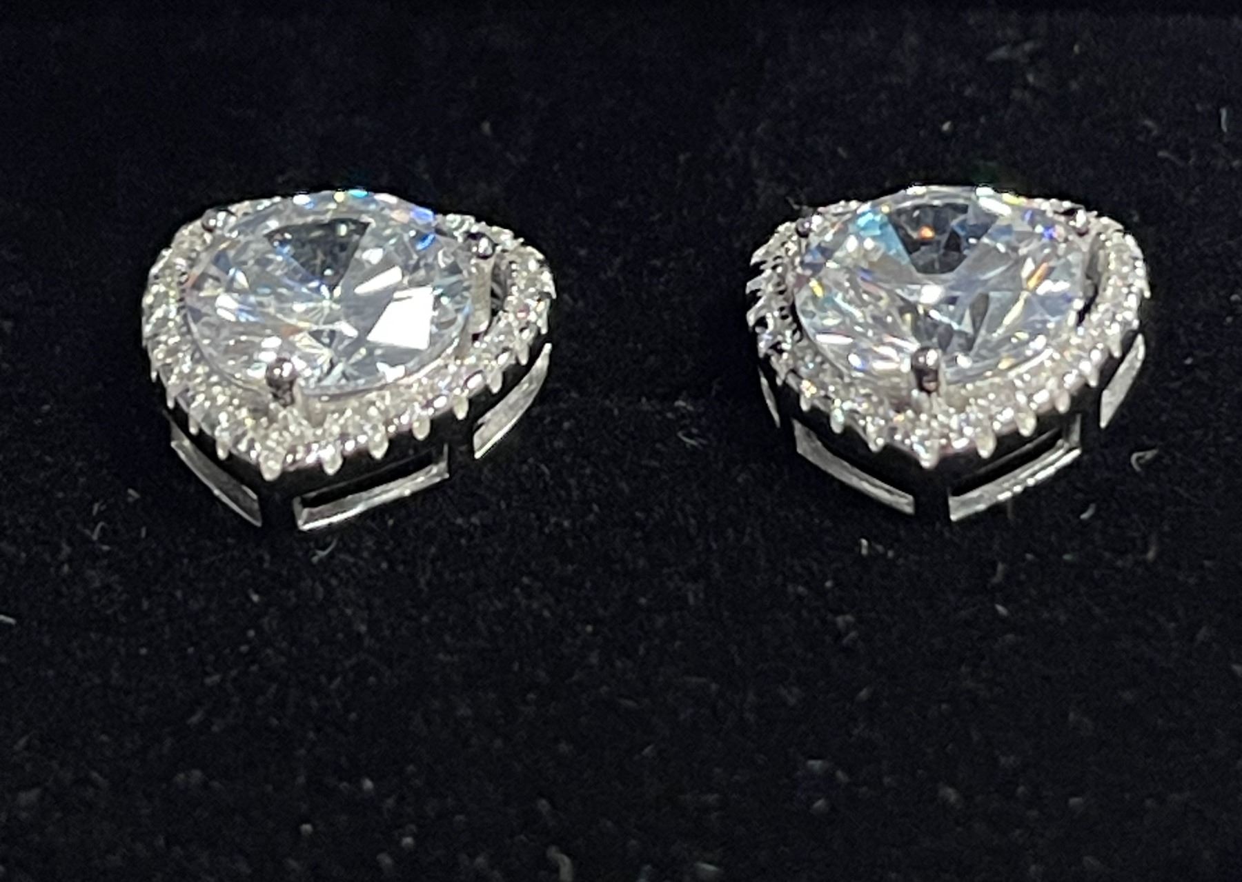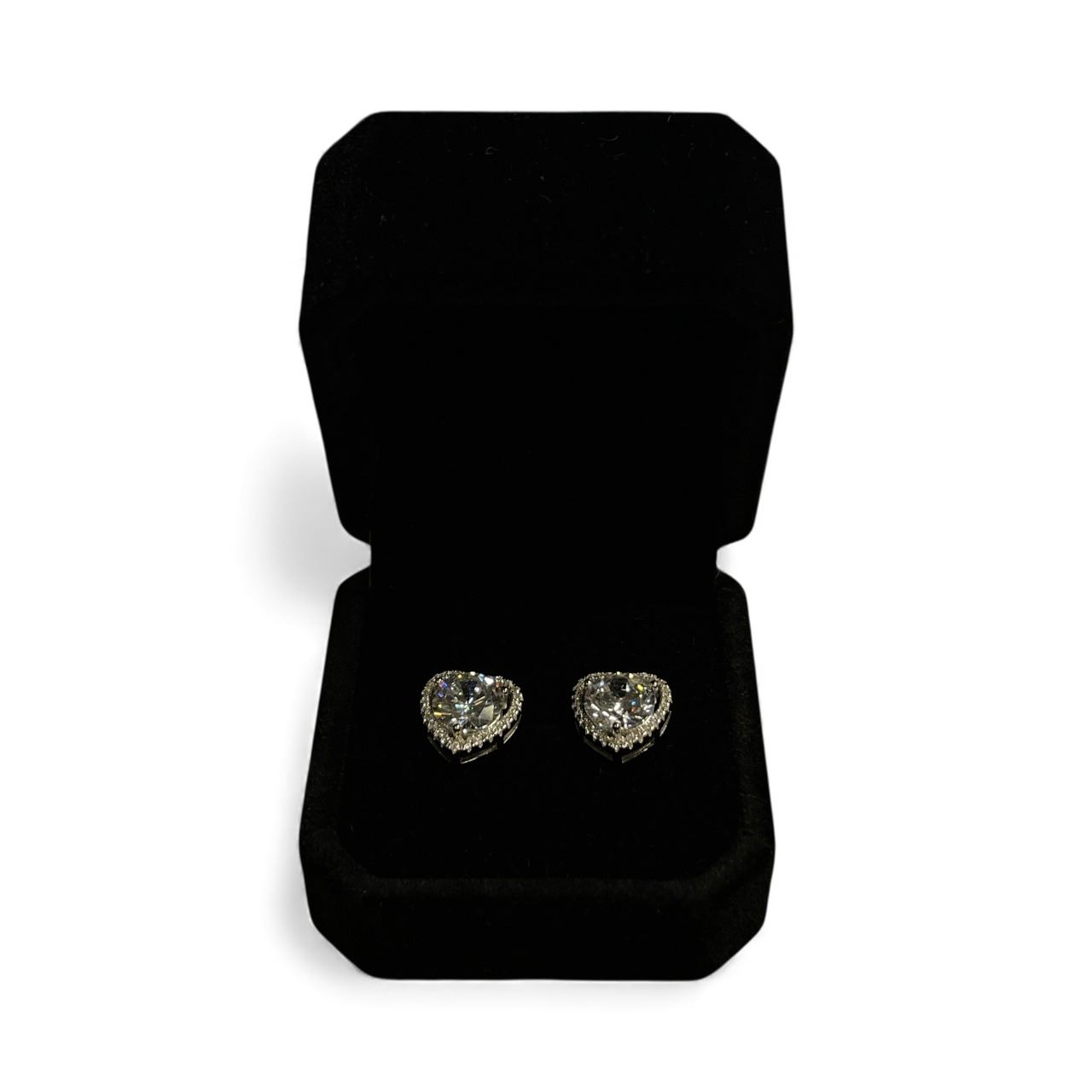 New 925S 2.0ct Each Simulated Diamond (CZ) Heart Halo Stud Earrings - Mounted in 925 Sterling Silver with White Gold Overlay w/Case