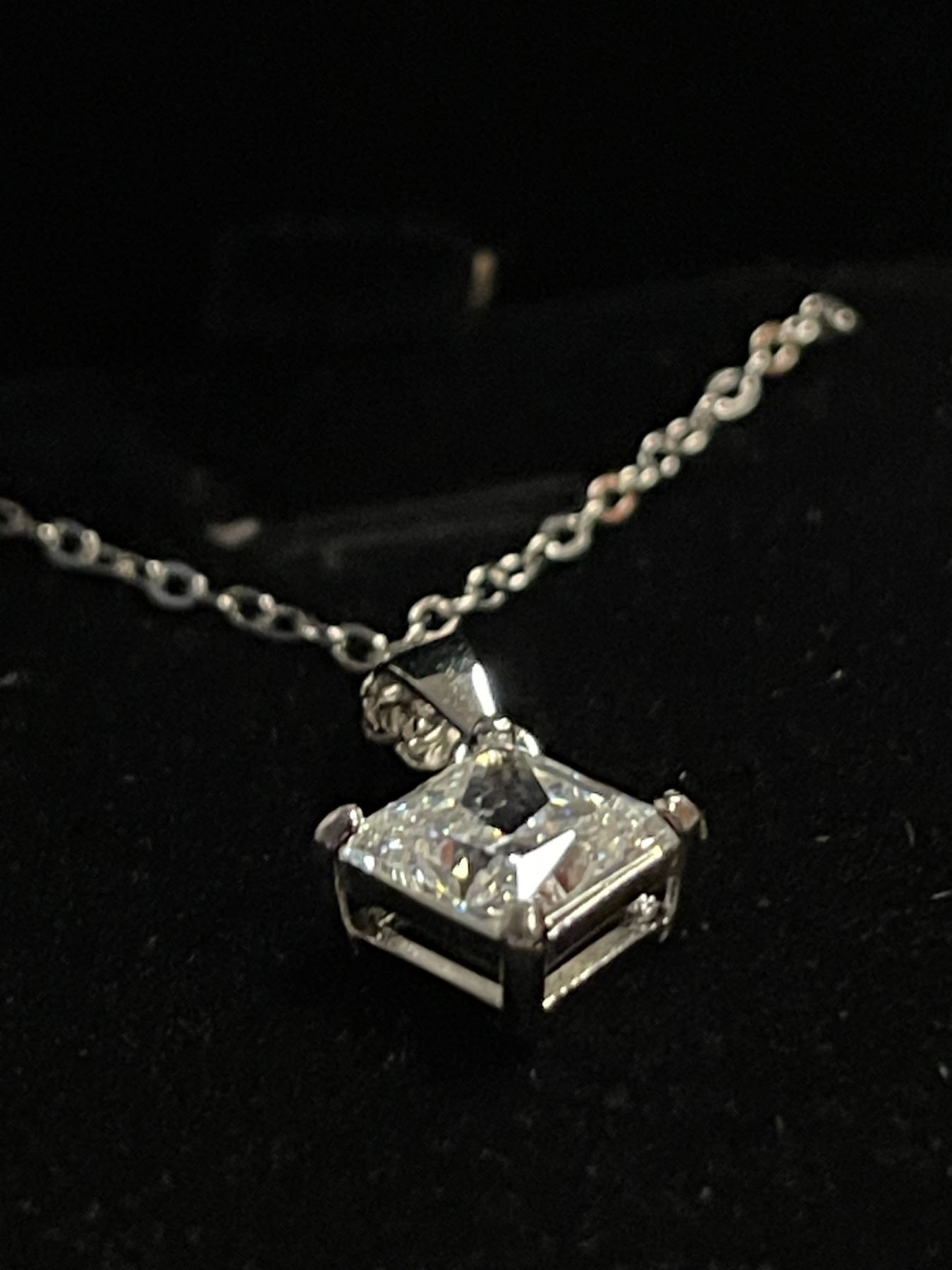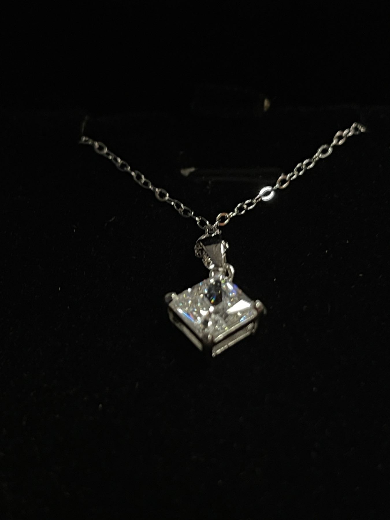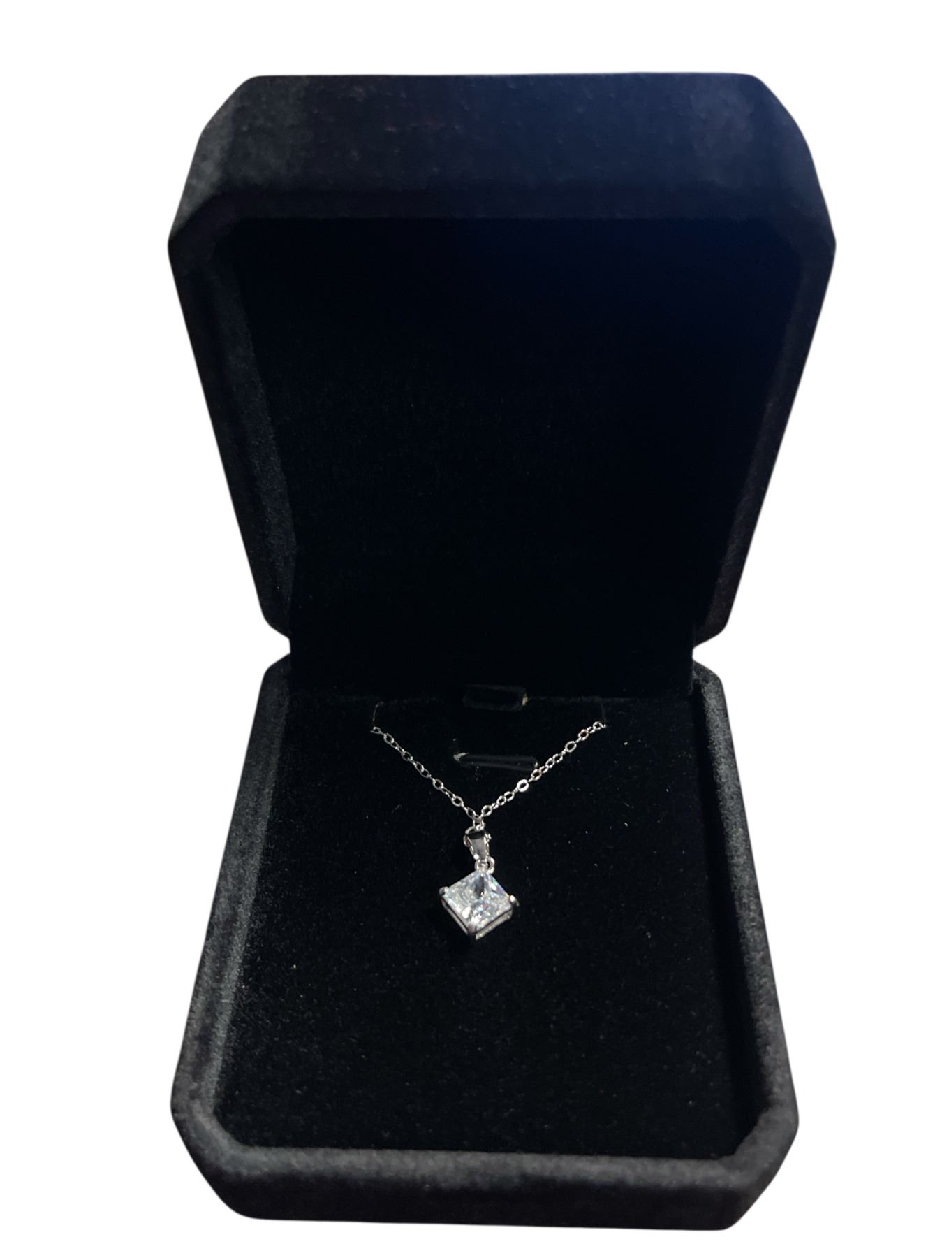 New 925S 2.0ct Princess Cut Simulated Diamond (CZ) Necklace - Adjustable 16" to 18" Long Mounted in 925 Sterling Silver with White Gold Overlay