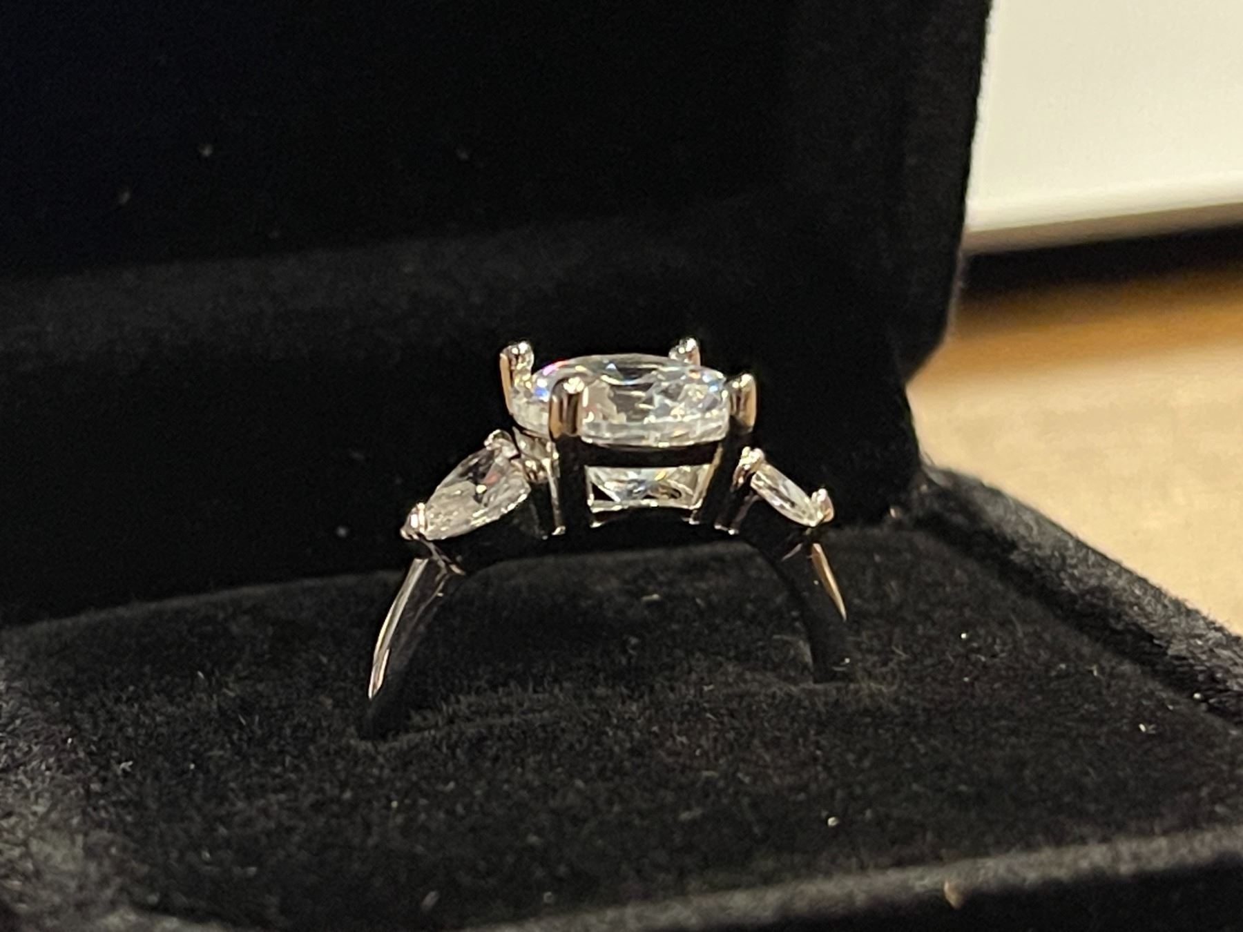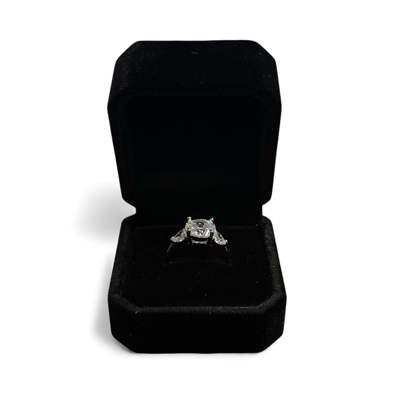 New 925S 3.0ct Simulated Diamond (CZ) Trinity Ring, with Heart Sidestones - Size 7.0 Mounted in 925 Sterling Silver White Gold Overlay w/Case