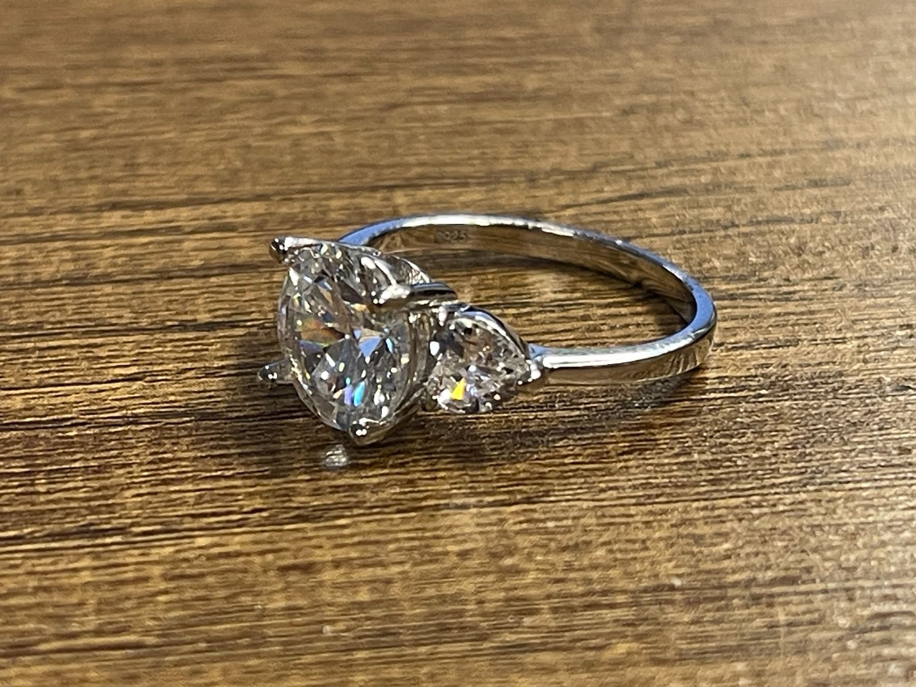 New 925S 3.0ct Simulated Diamond (CZ) Trinity Ring, with Heart Sidestones - Size 7.0 Mounted in 925
