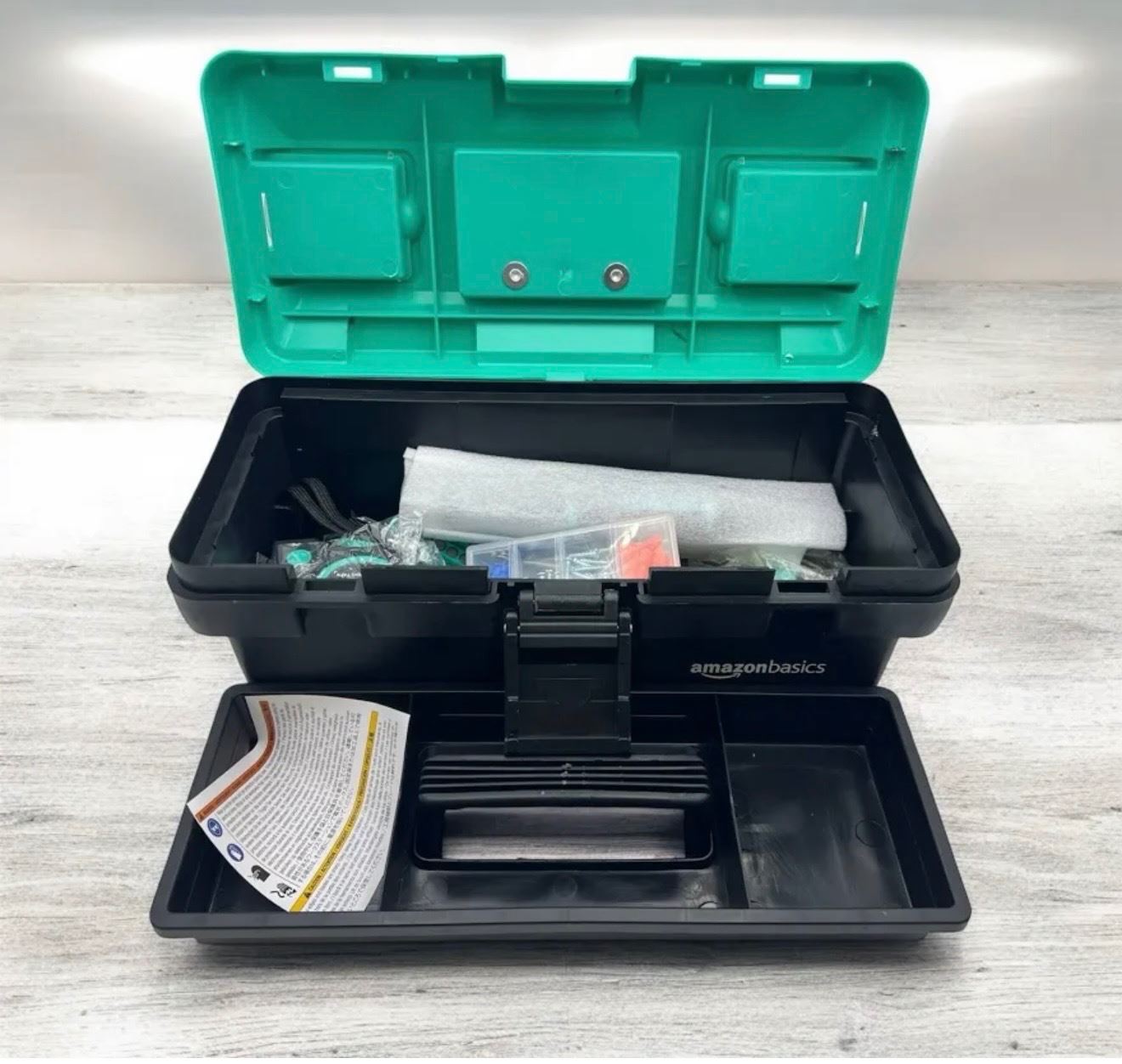 New - Amazon Basics Turquoise 150-Piece Home Tool Kit