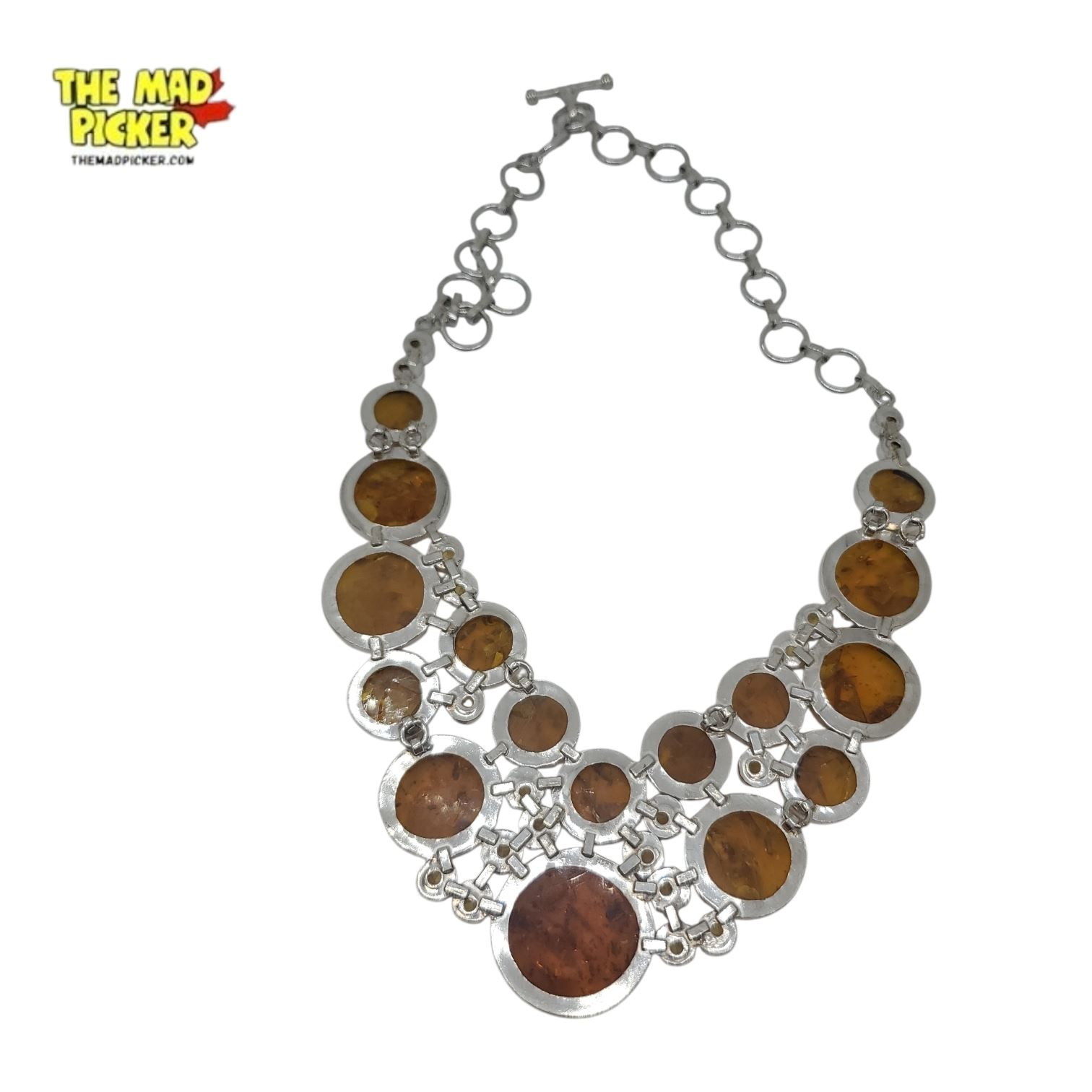 New Amber Resin Collar Necklace in Silver Setting - 2" wide at the front