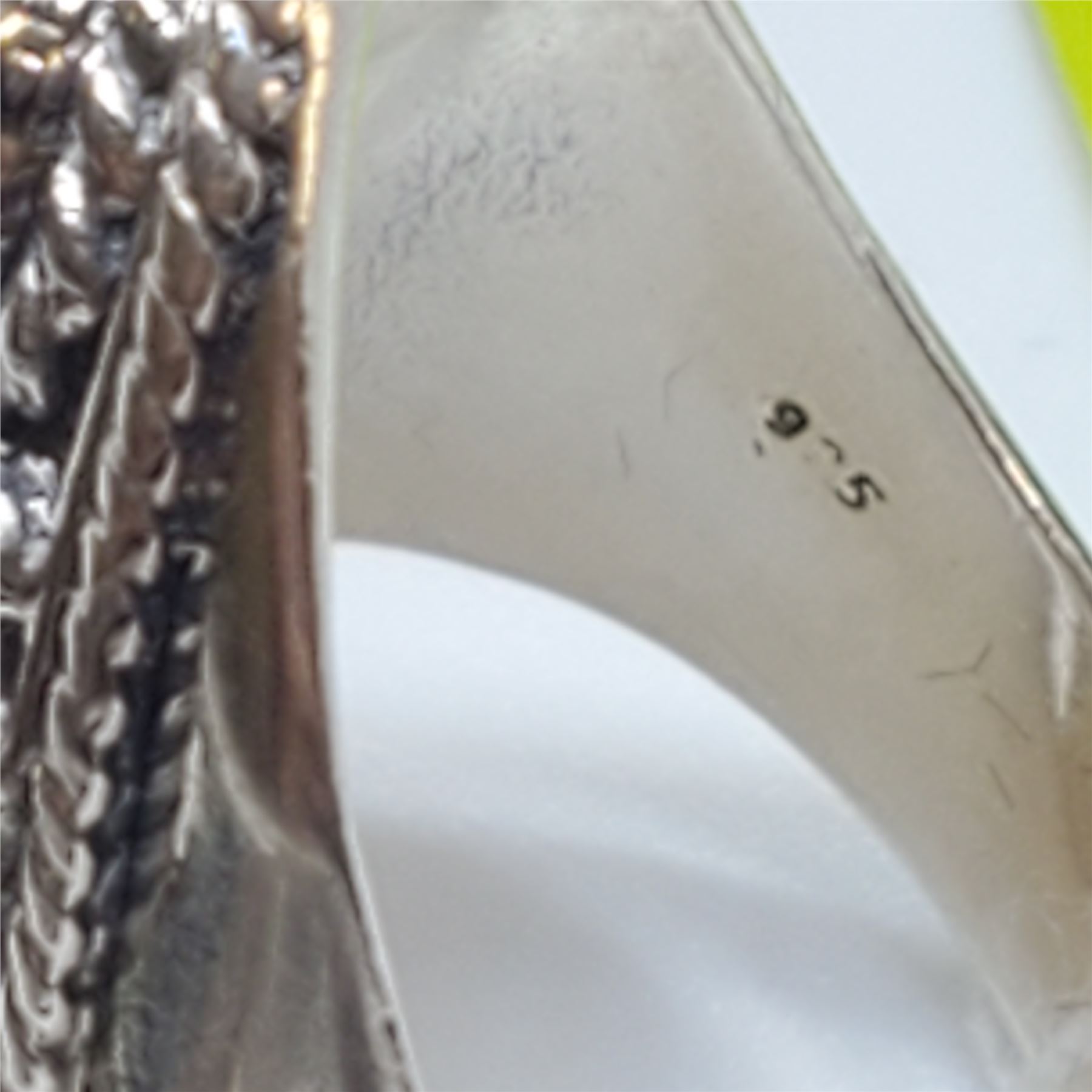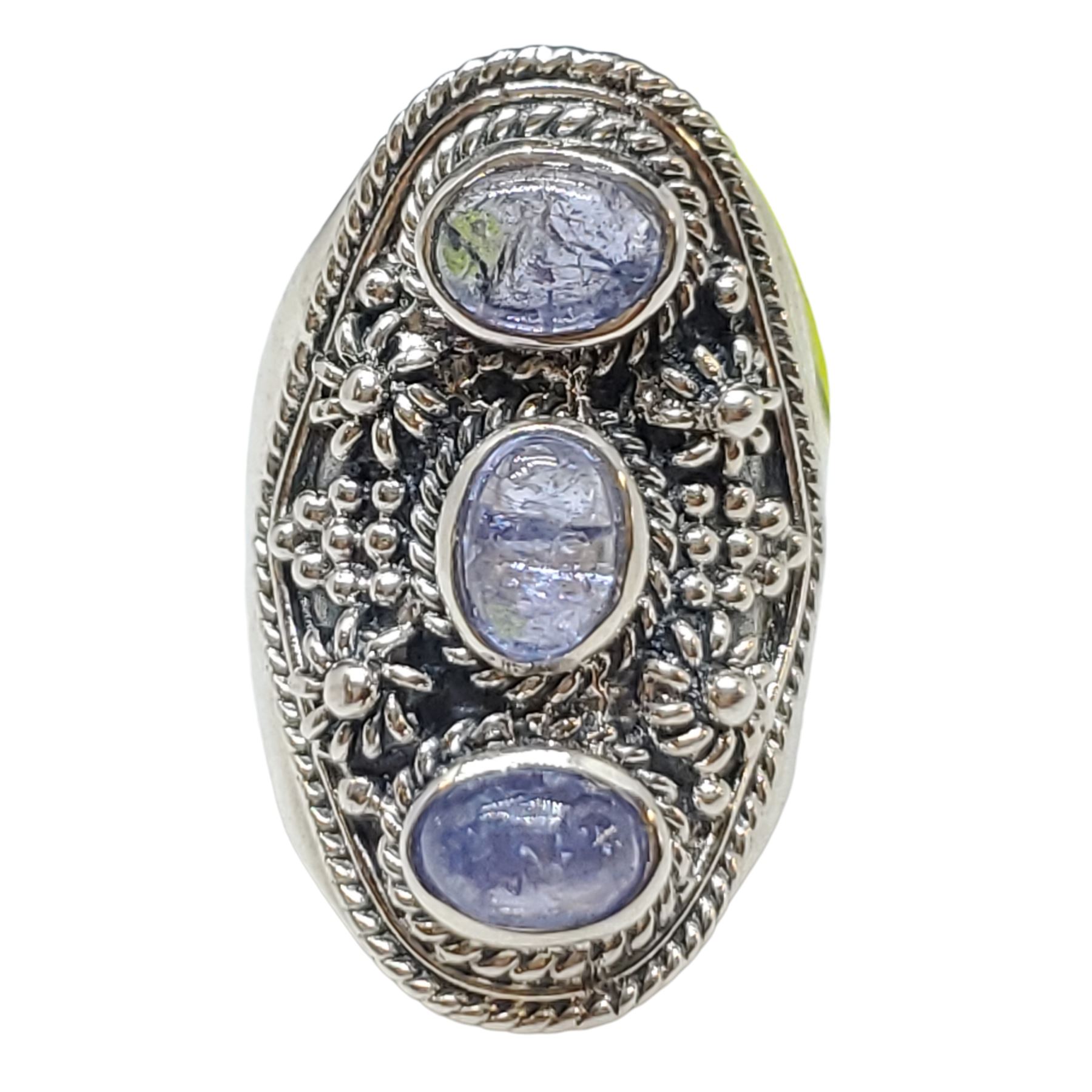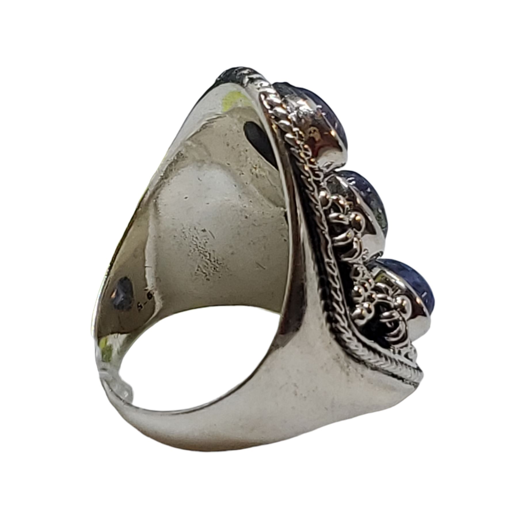 New Amethyst Cabochon Ring Set in .925 Sterling Silver - Size 9 ring face is 23 mm long - Total weight including gemstones: 8.5 grams