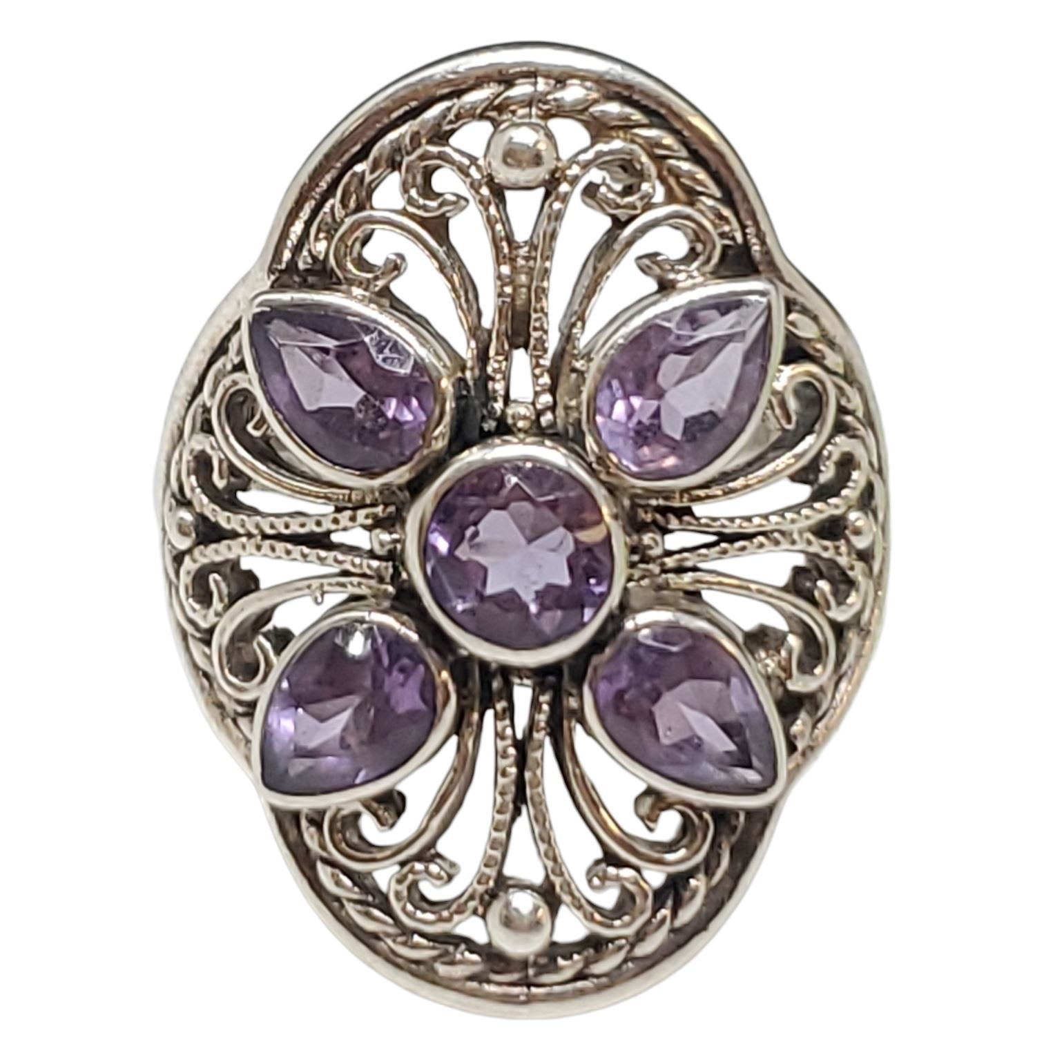New Amethyst Ring Set in .925 Sterling Silver - Size 10 ring is 27mm long - Total weight including gemstones: 10 grams