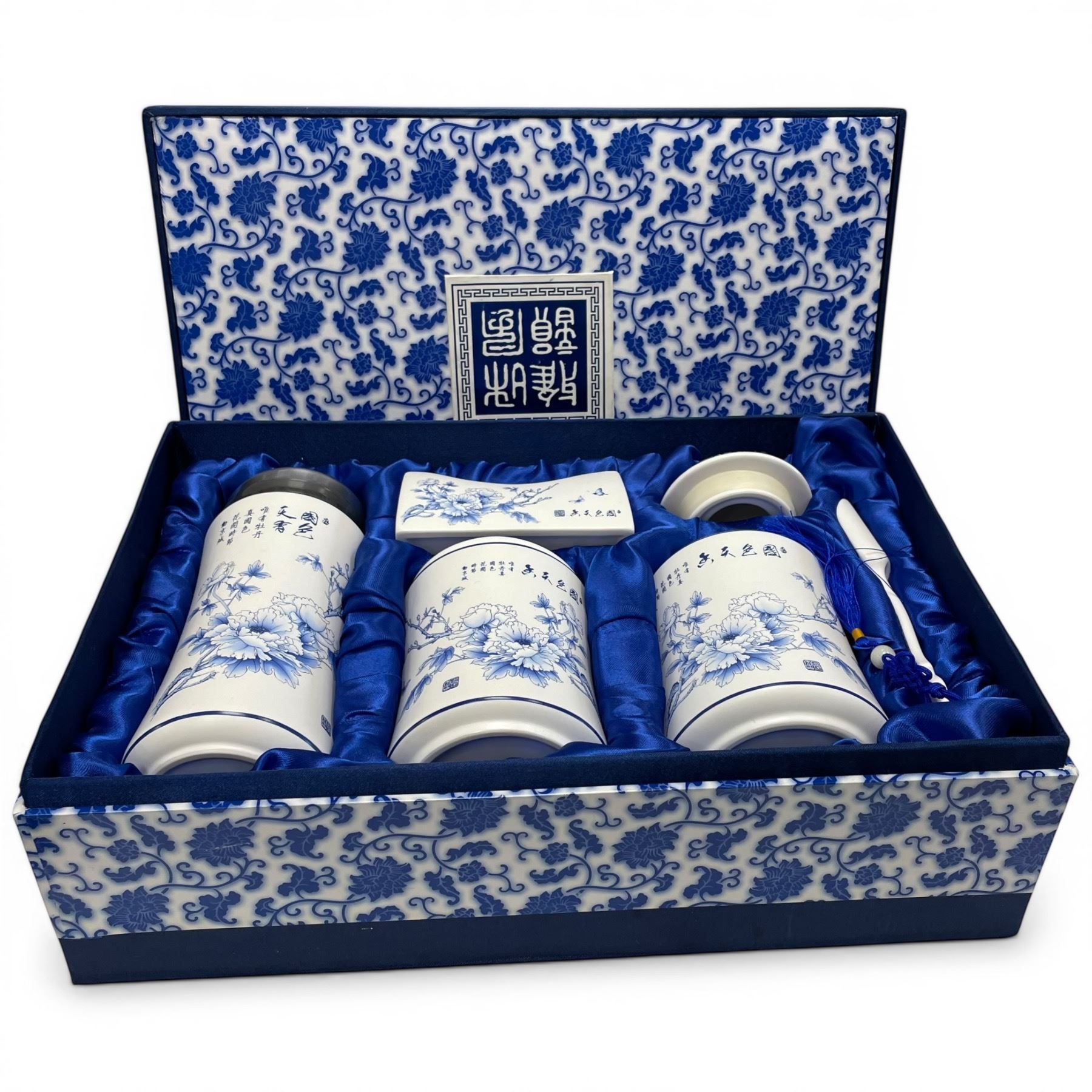 New Blue & White Peony Tea Flask Set in Original Gift Box
