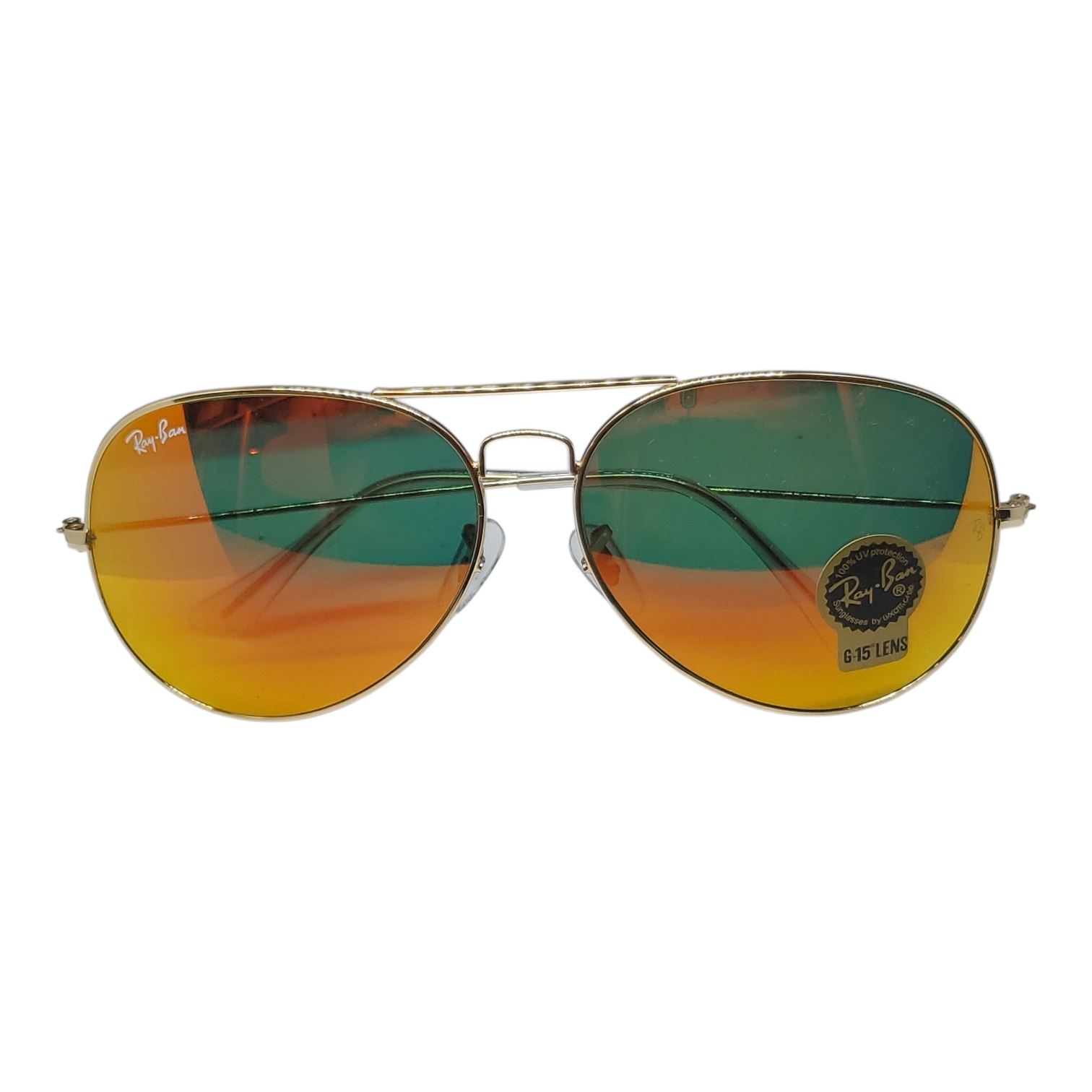 New Genuine Ray Ban Aviator Sunglasses - Gold Wire Frame with Reflective G-15 Lens