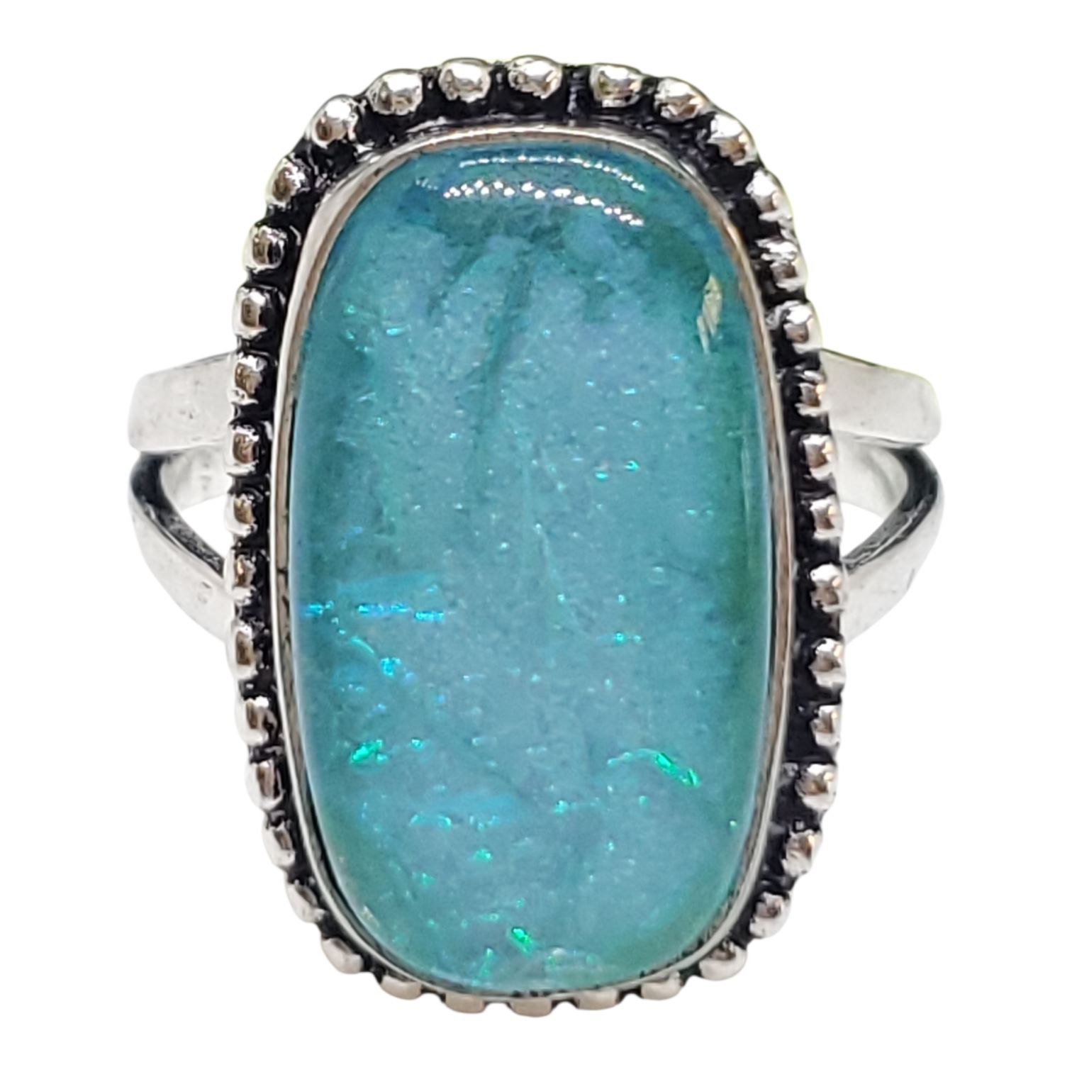 New Iridescent Opal Triplet Ring Set in .925 Sterling Silver - Size 10 ring is 21.5 mm long - Total weight including opal: 7.8 grams