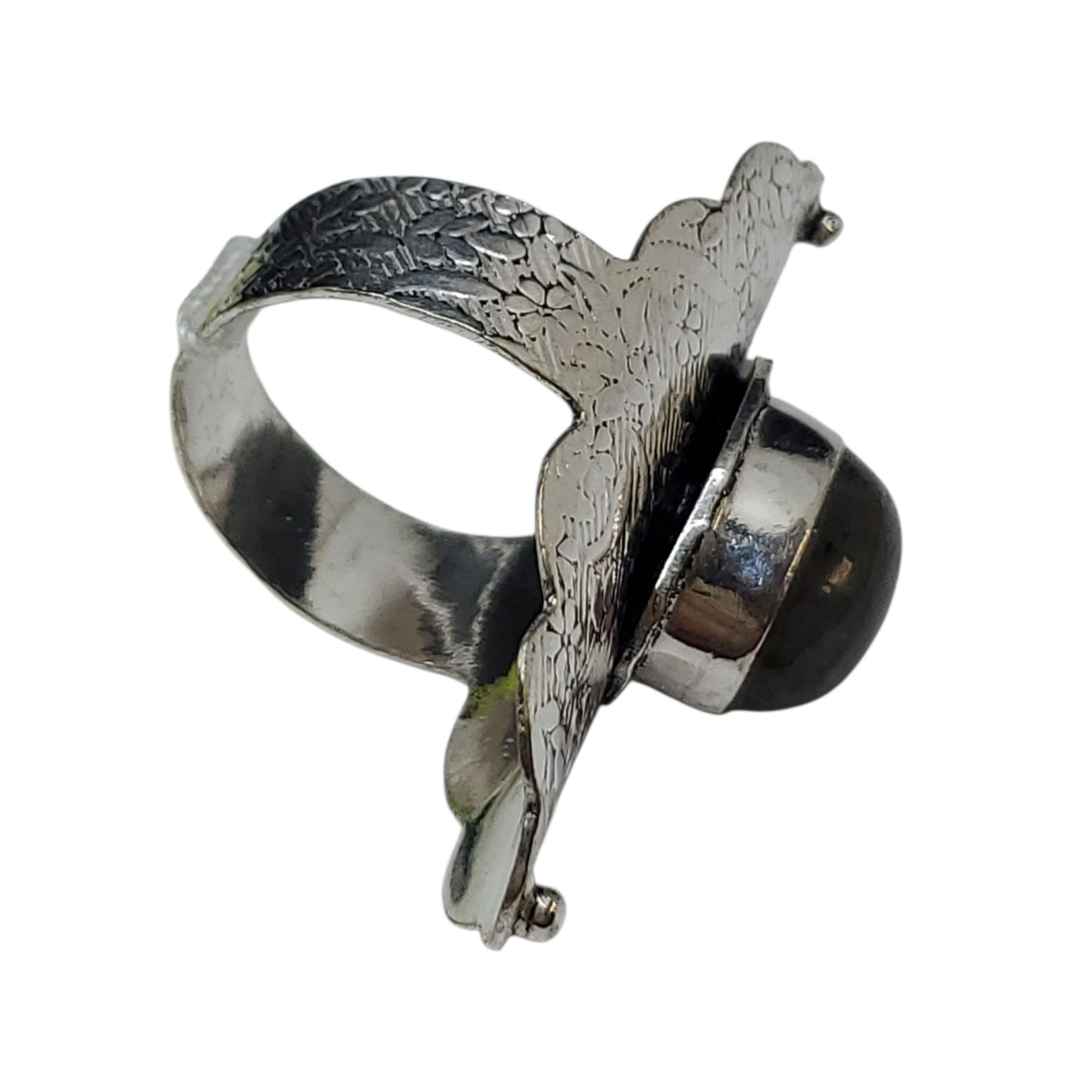 New Labradorite Cabochon Ring Set in .925 Sterling Silver - Size 11 ring is 45mm long - Total weight including gem: 9.1 grams