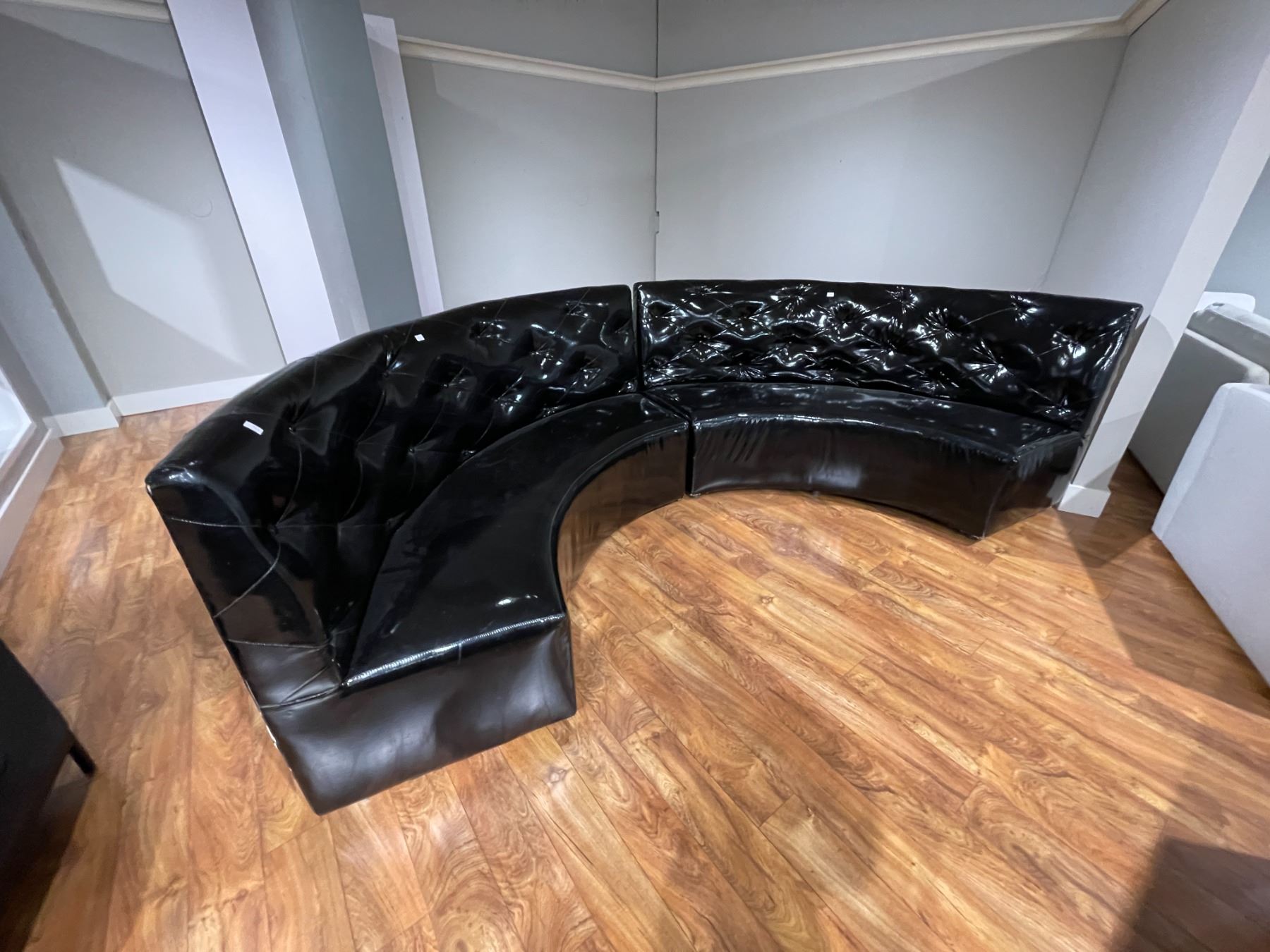 New - Modern Black Curved Tufted Sectional Sofa, Approx. H39" x W150" x 27" - without box