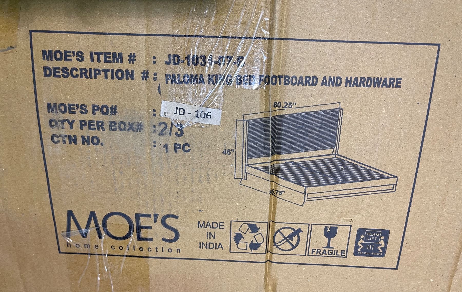 - 2 Pcs Paloma King Bed Footboard and Hardware (JD-1031-07-B)