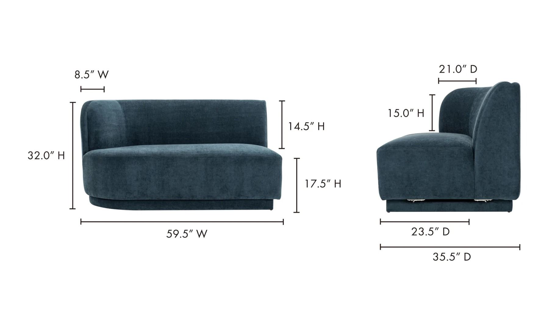 New Moe's Home Collection - Yoon 2 Seat Sofa Left Nightshade Blue - RV: $2635 (JM-1019-45)