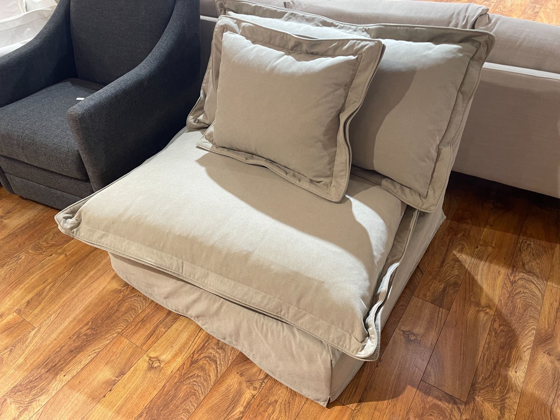 New - Moe's Olivia Accent Slipper Chair - Sand Fabric, RV: $1099 CAD (UB-1023-34) - without box