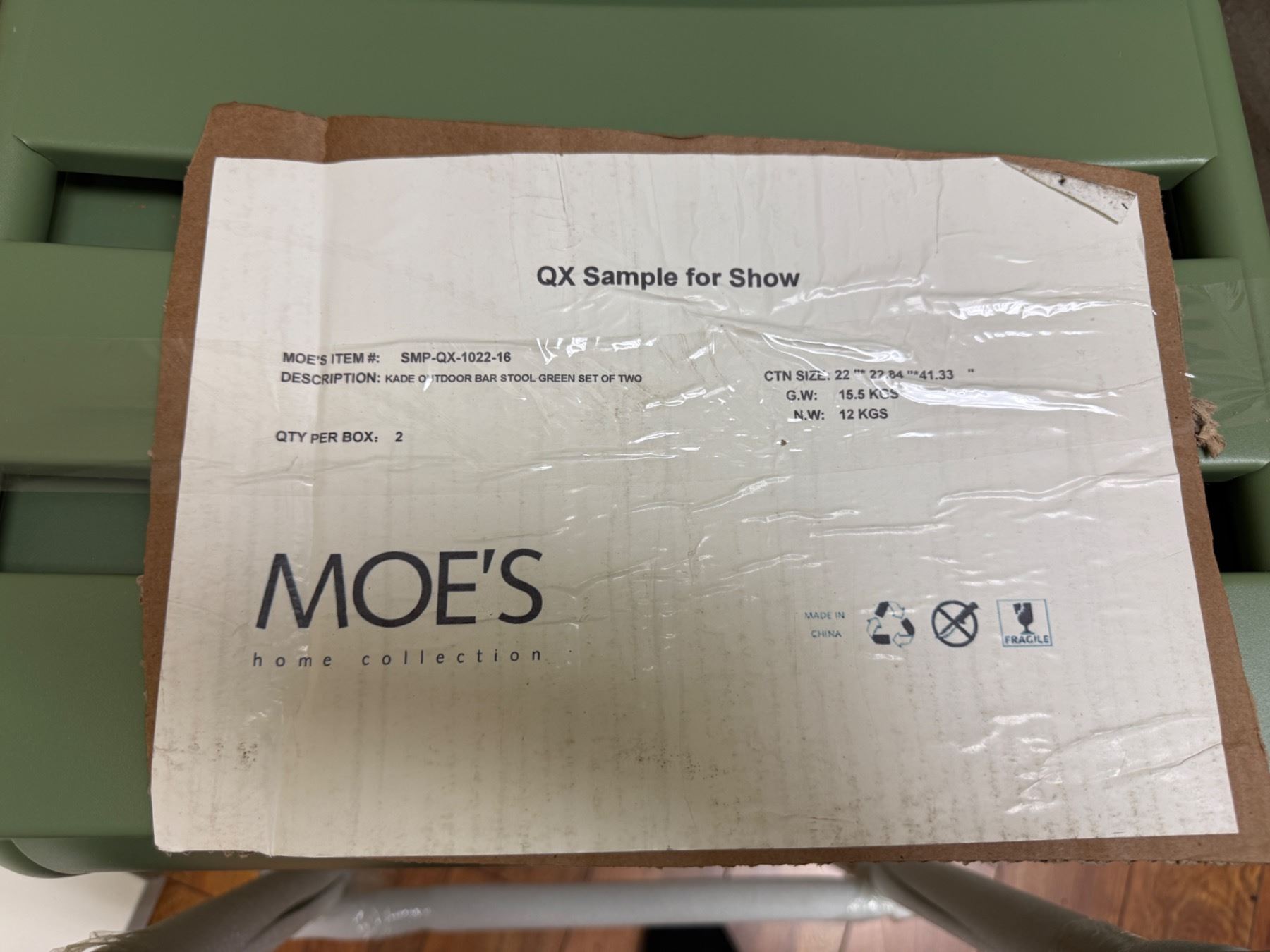 New - Moe's Set of 2 Kade Outdoor Bar Stool - Green (SMP-QX-1022-16)