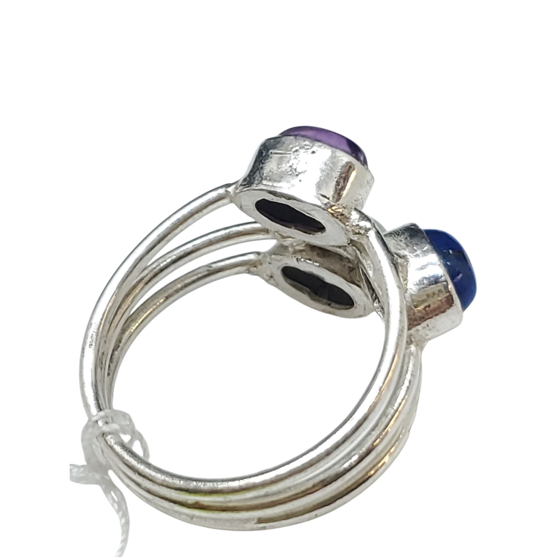 New Moonstone, Lapis & Amethyst Cabochon Ring Set in .925 Sterling Silver - Size 8.5 ring is13.5mm long - Total weight including gems: 4.7grams