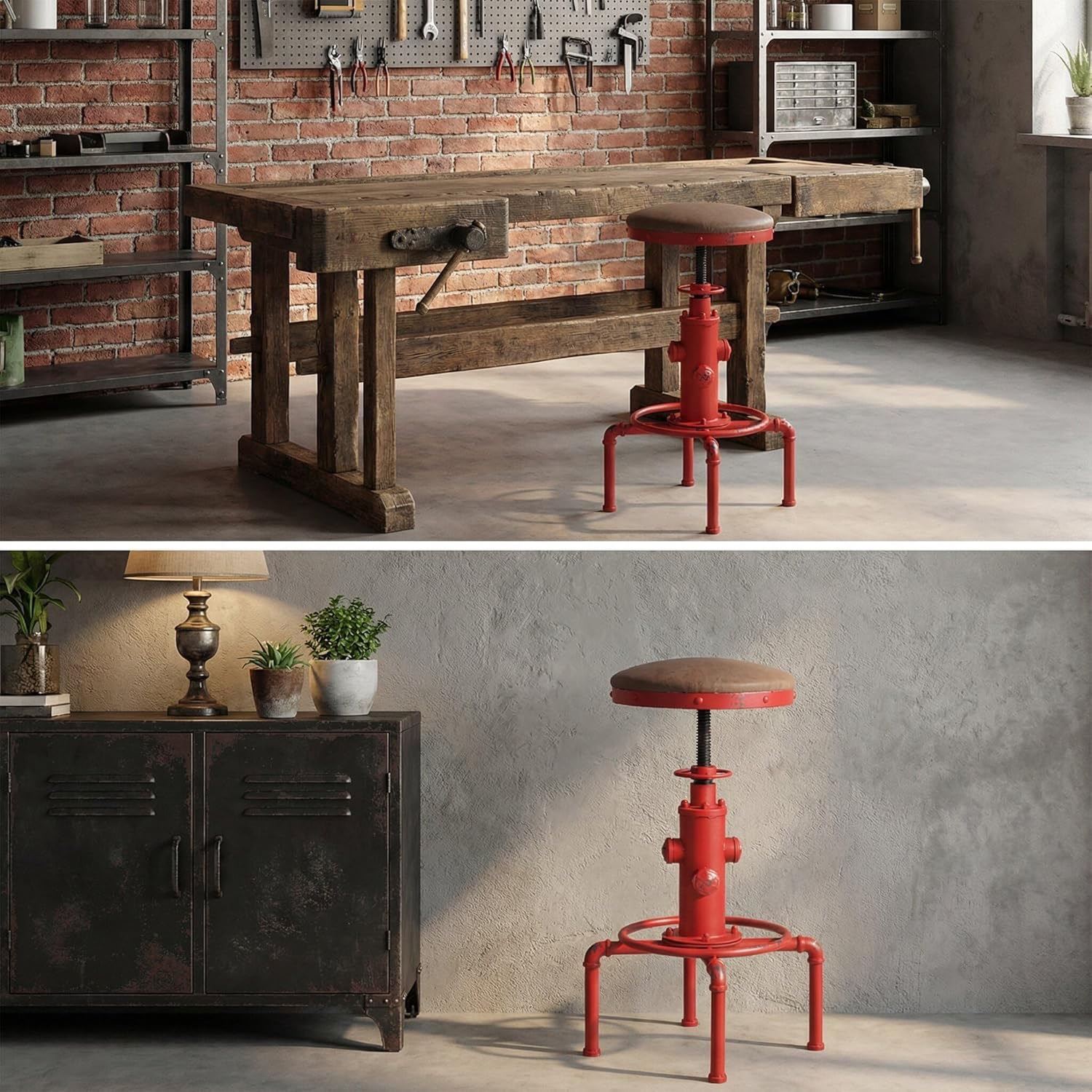 New - NACH Leo Adjustable Industrial Stool, Red - 18" x 18" x 24"