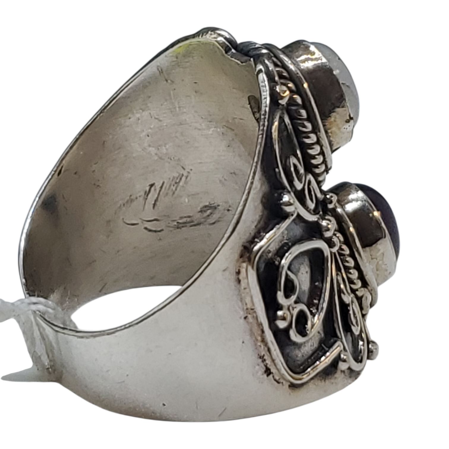 New Obsidian & Moonstone Ring Set in .925 Sterling Silver - Size 10 ring is 26mm long - Total weight including gems: 9.2 grams