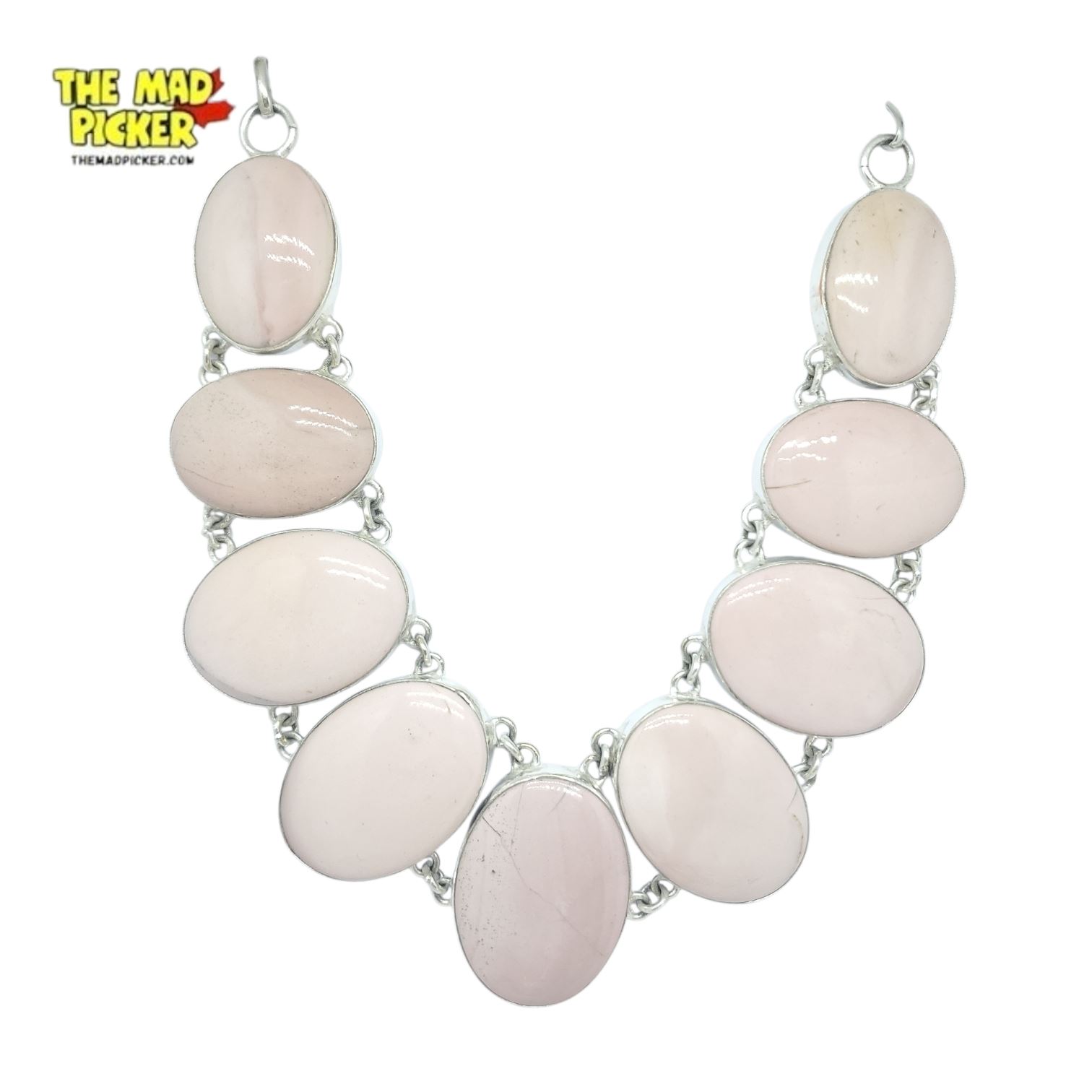New Pink Andean Opal Bracelet & Collar Necklace in Silver Setting - Necklace is 1.75" deep at the front & Toggle Bracelet is 1.5" wide