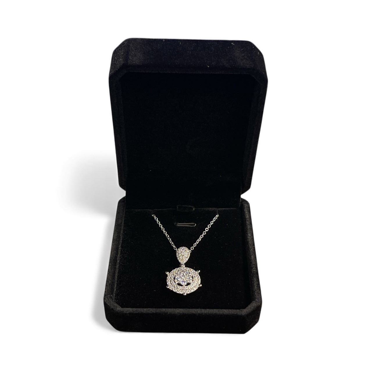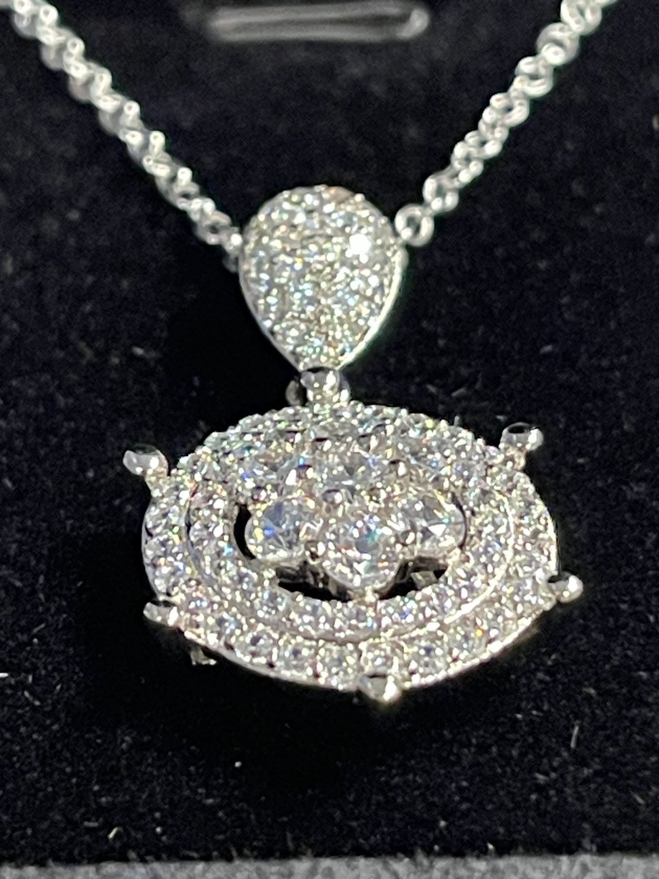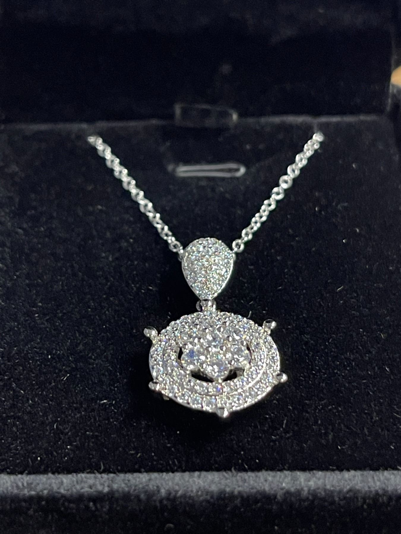 New Platinum Plated 0.7tcw Simulated Diamond (CZ) Cluster Necklace - Adjustable Chain 16"-18" Long w/Case