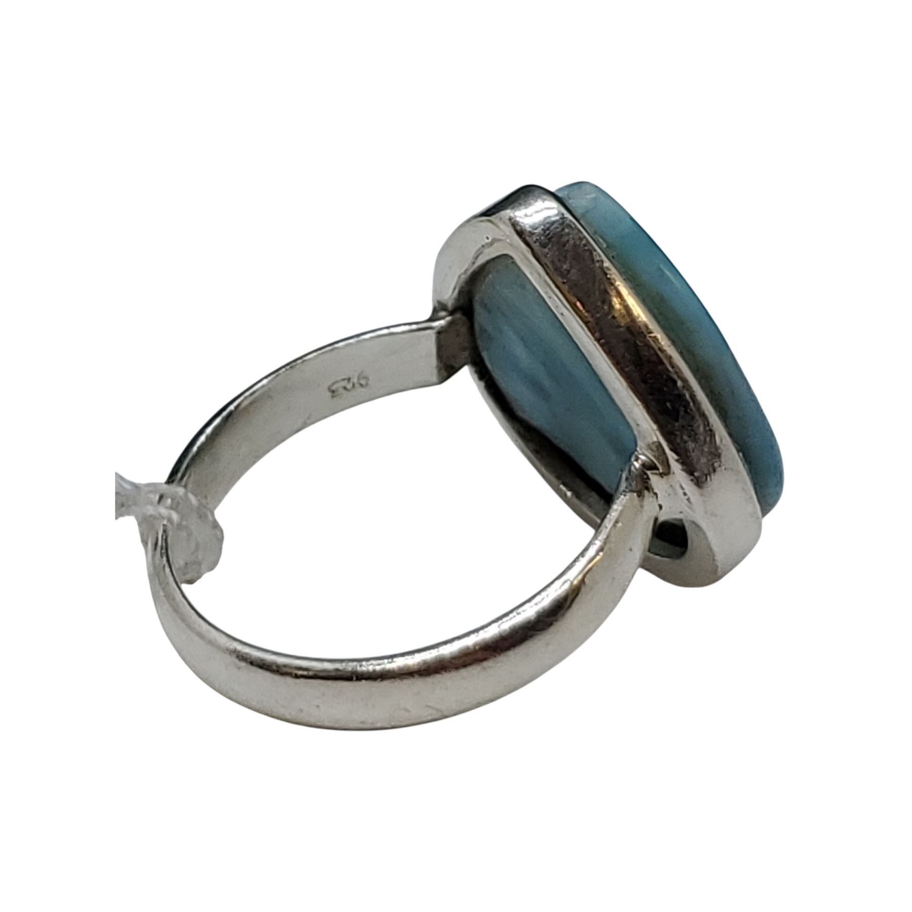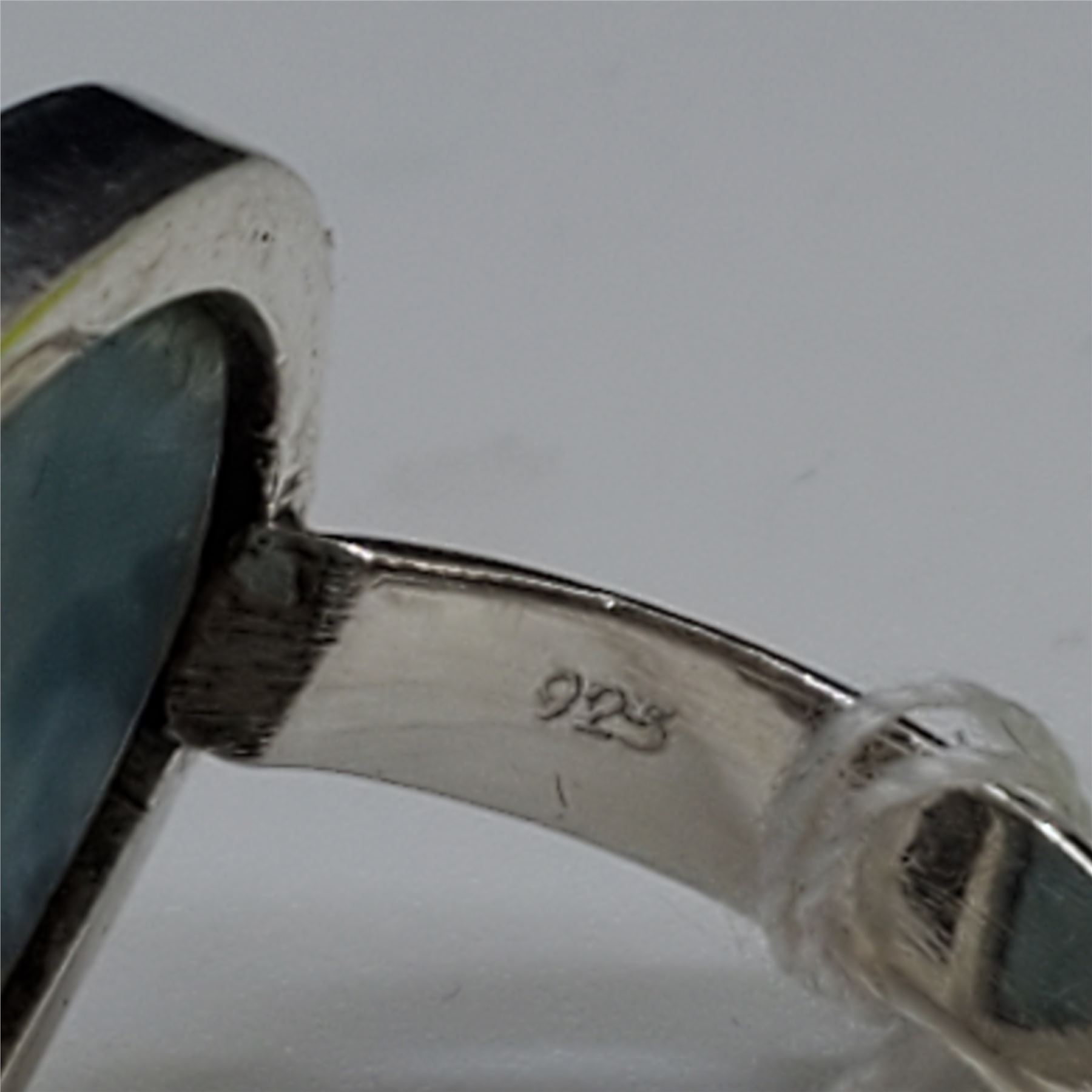 New Polished Blue Lace Agate Teardrop Ring Set in .925 Sterling Silver - Size 10 ring is 22mm long - Total weight including gems: 8.4 grams