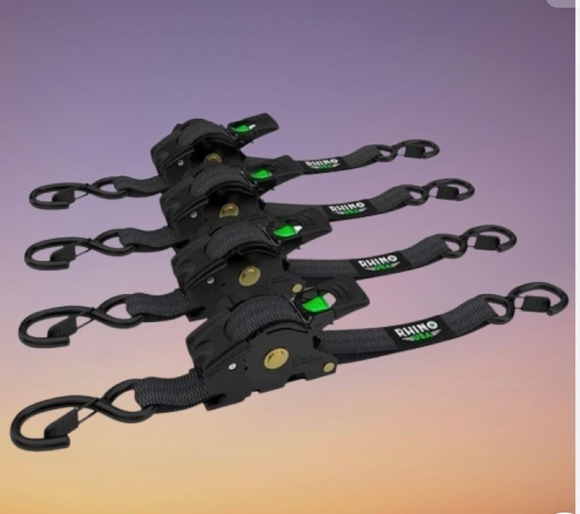 New - Rhino USA Retractable Ratchet Straps (4-Pack) - RV: $106 CAD