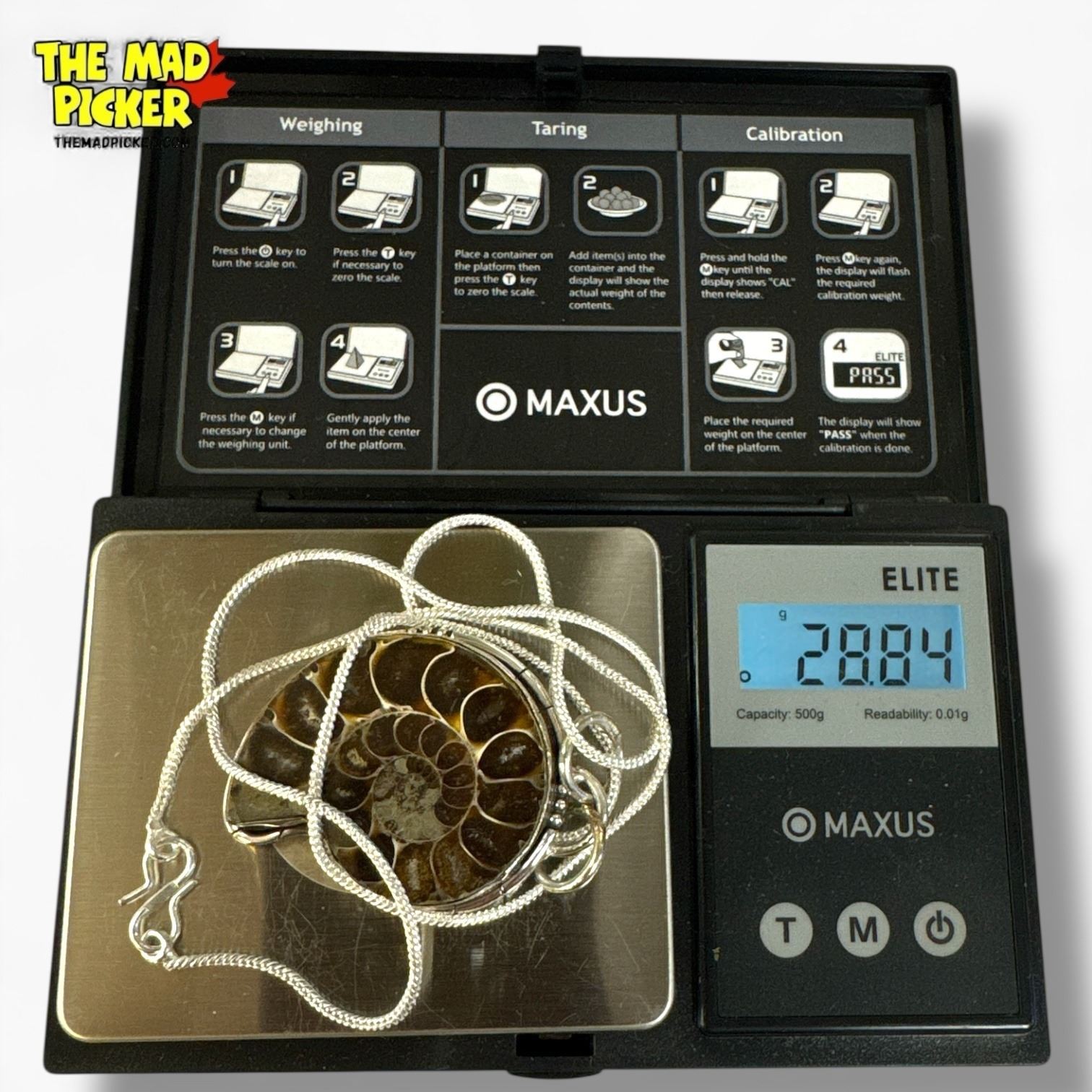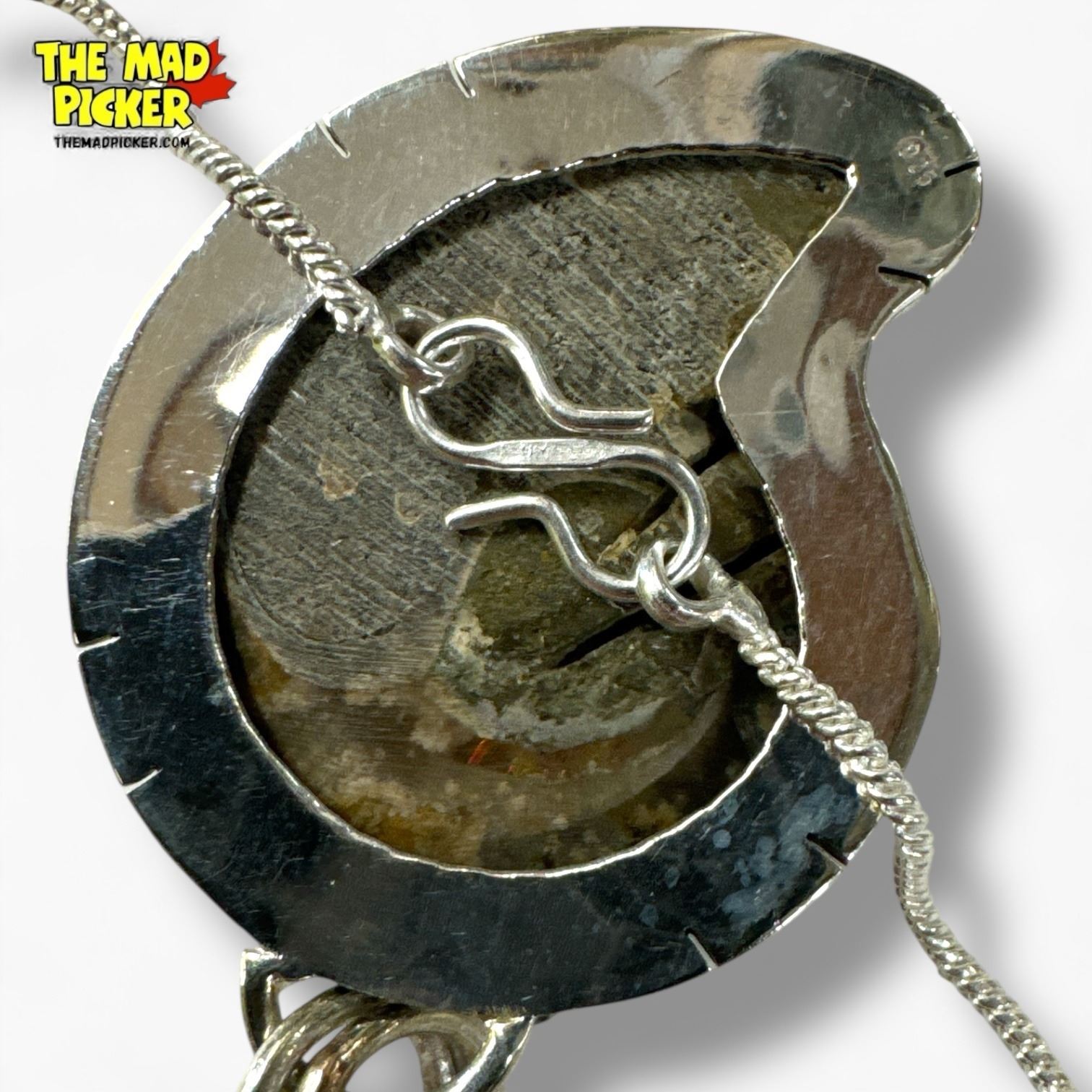 New Sterling Silver Ammonite Fossil Necklace - (24 x 40 mm Ammonite on 20" chain)