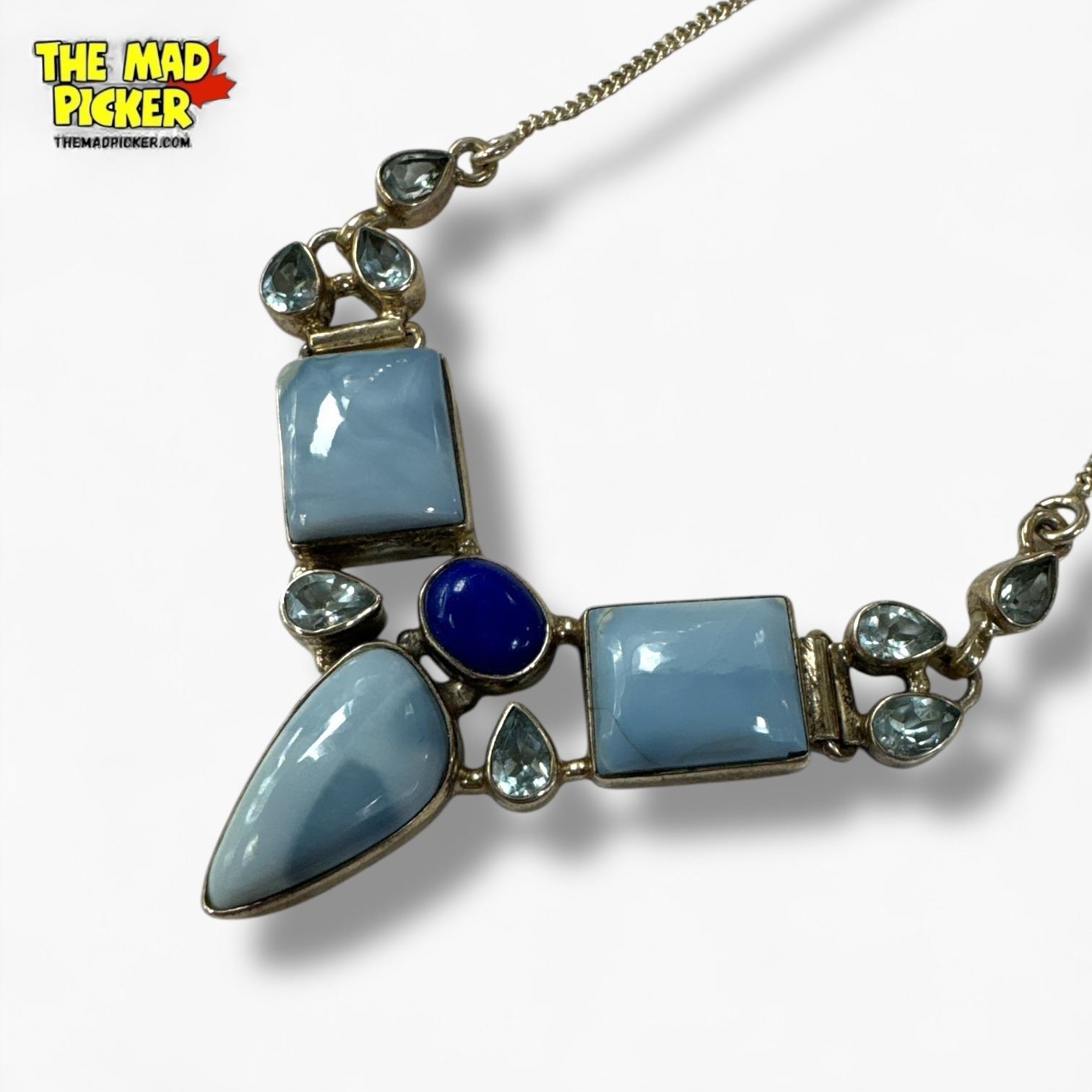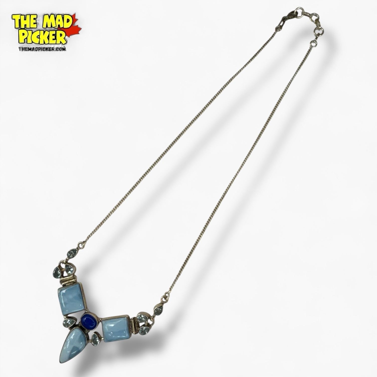 New Sterling Silver Blue Lace Agate, Lapis and Topaz 18" Necklace - Total weight: 20 grams