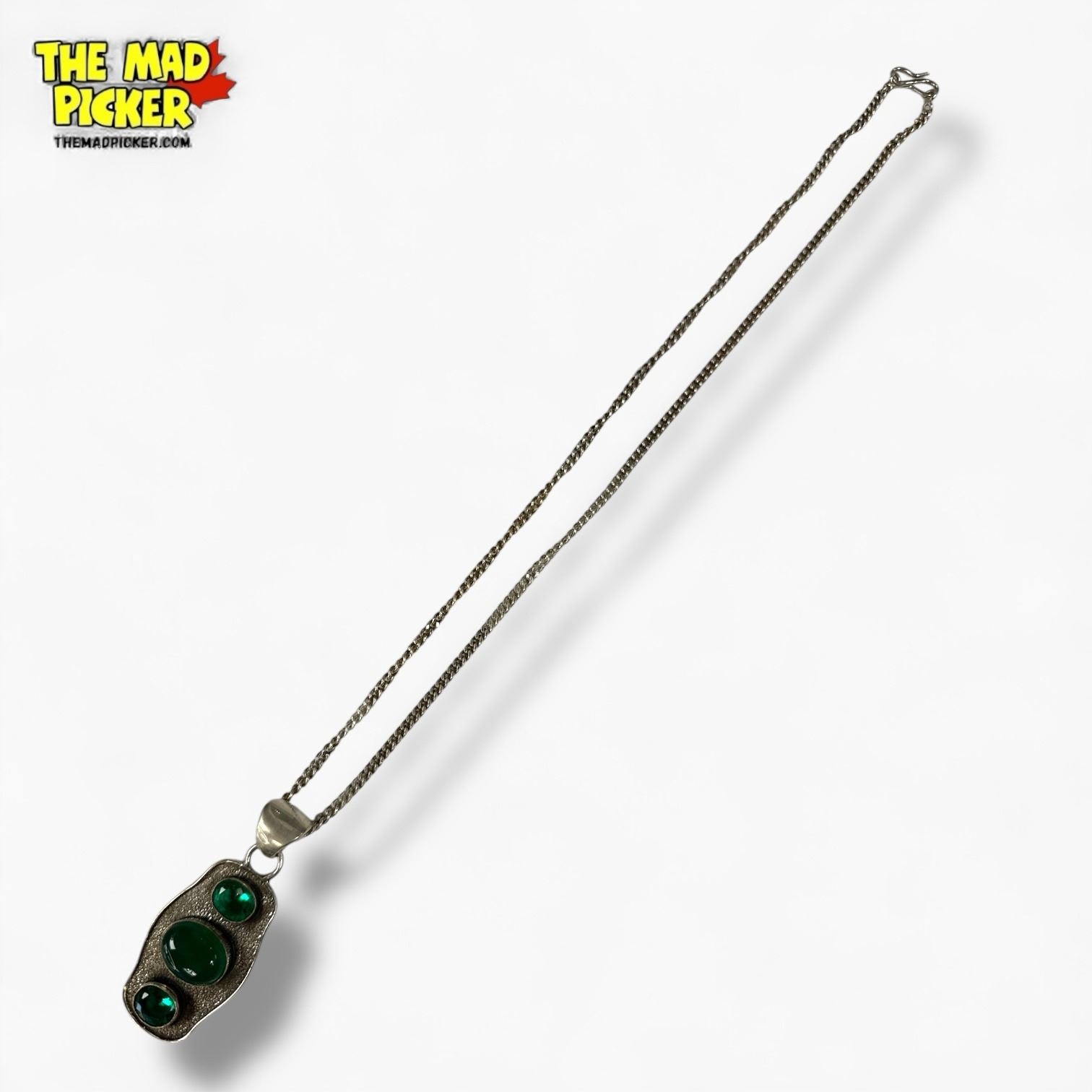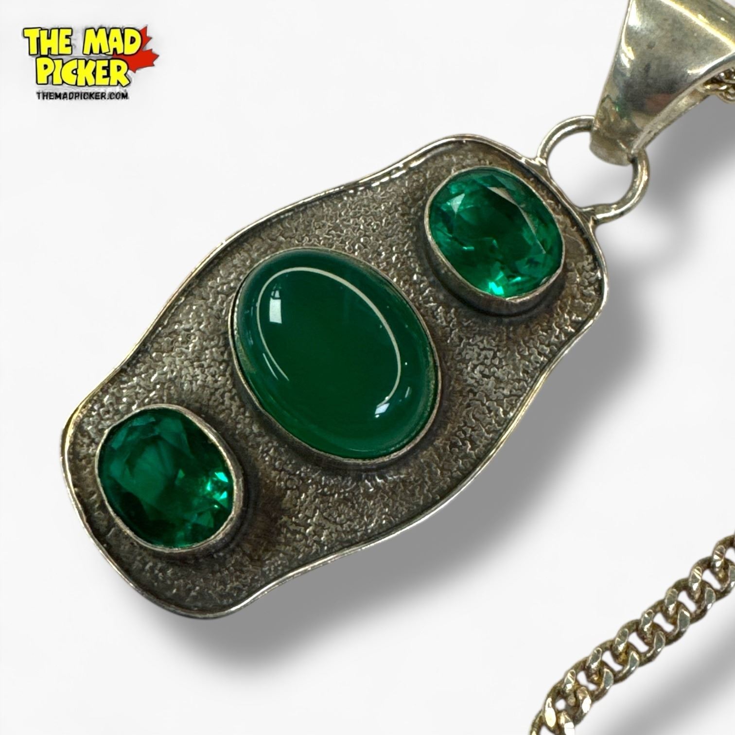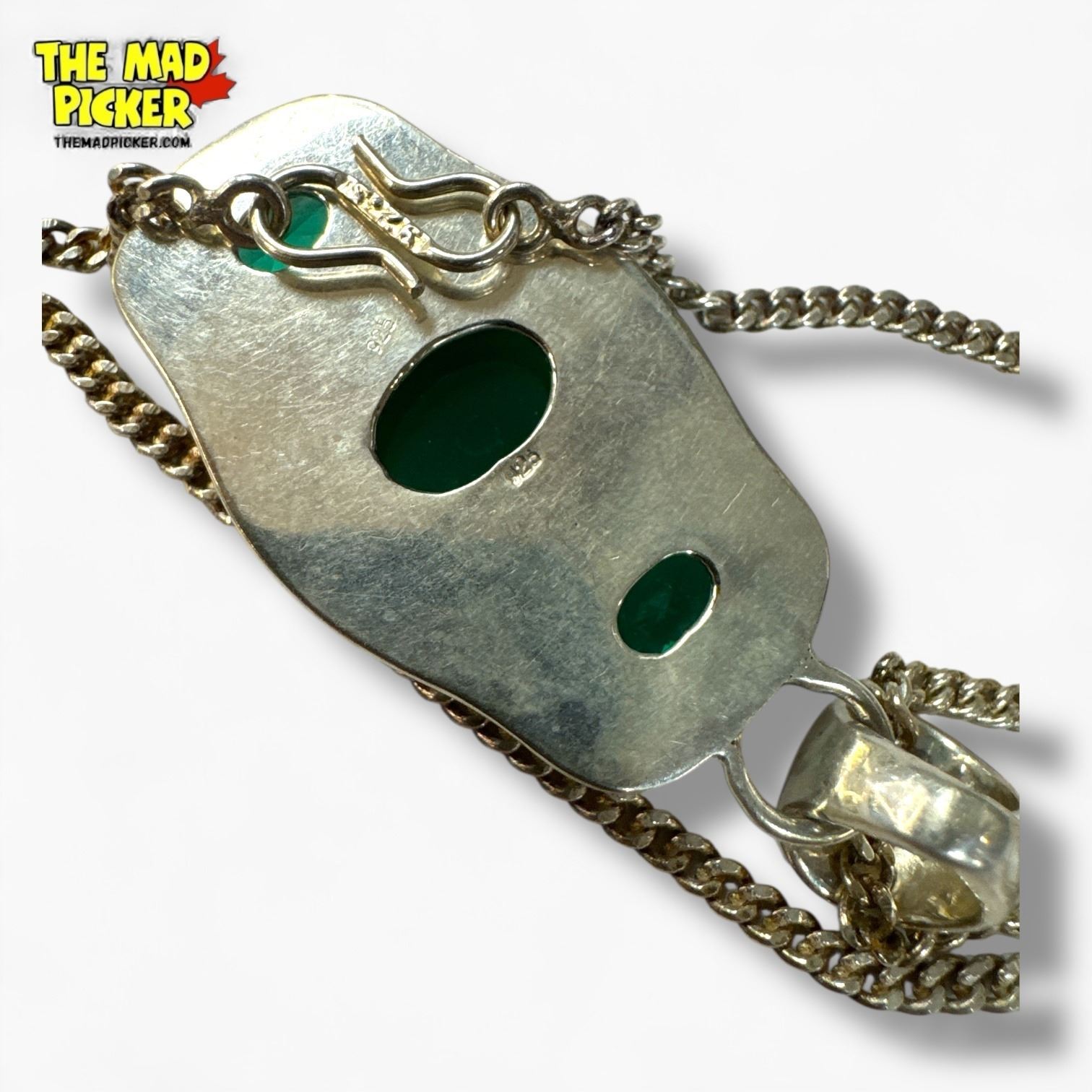 New Sterling Silver Emerald Cabochon & Faceted Emerald Crystal Necklace - (25 x 48 mm pendant on 20" chain) - Total weight: 20.5 grams