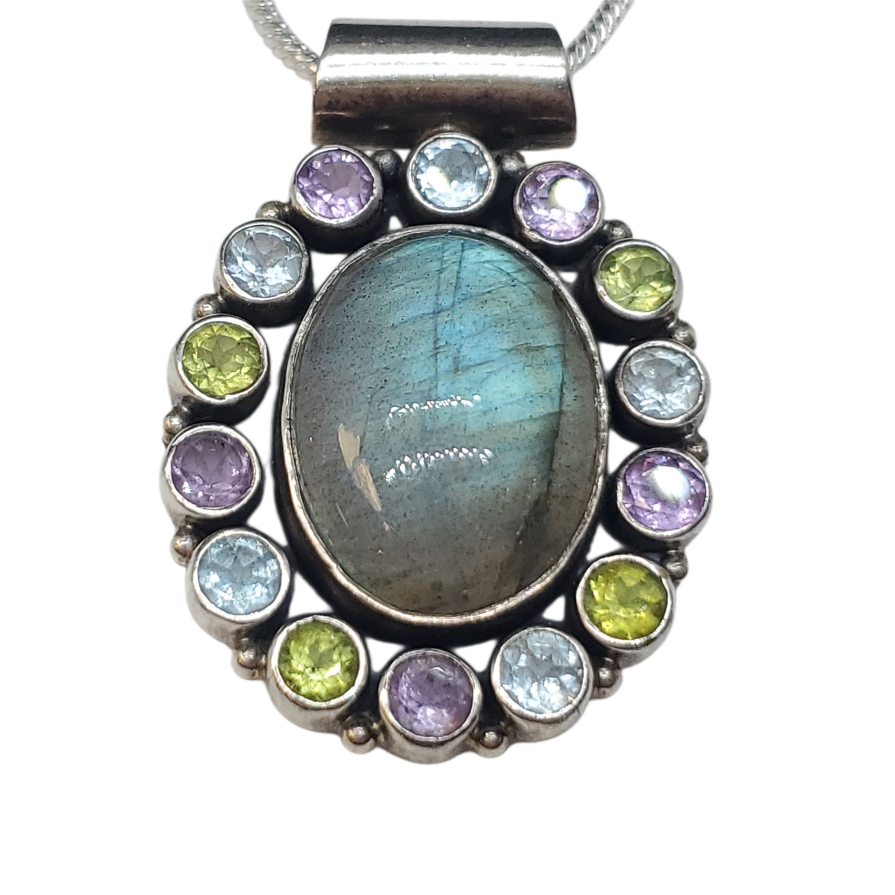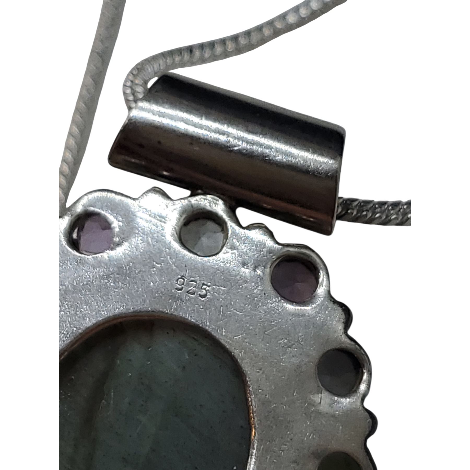 New Sterling Silver Labradorite, Peridot & Amethyst Necklace (39 x 25 mm pendant on a 20" chain) - Total weight: 18.4 grams