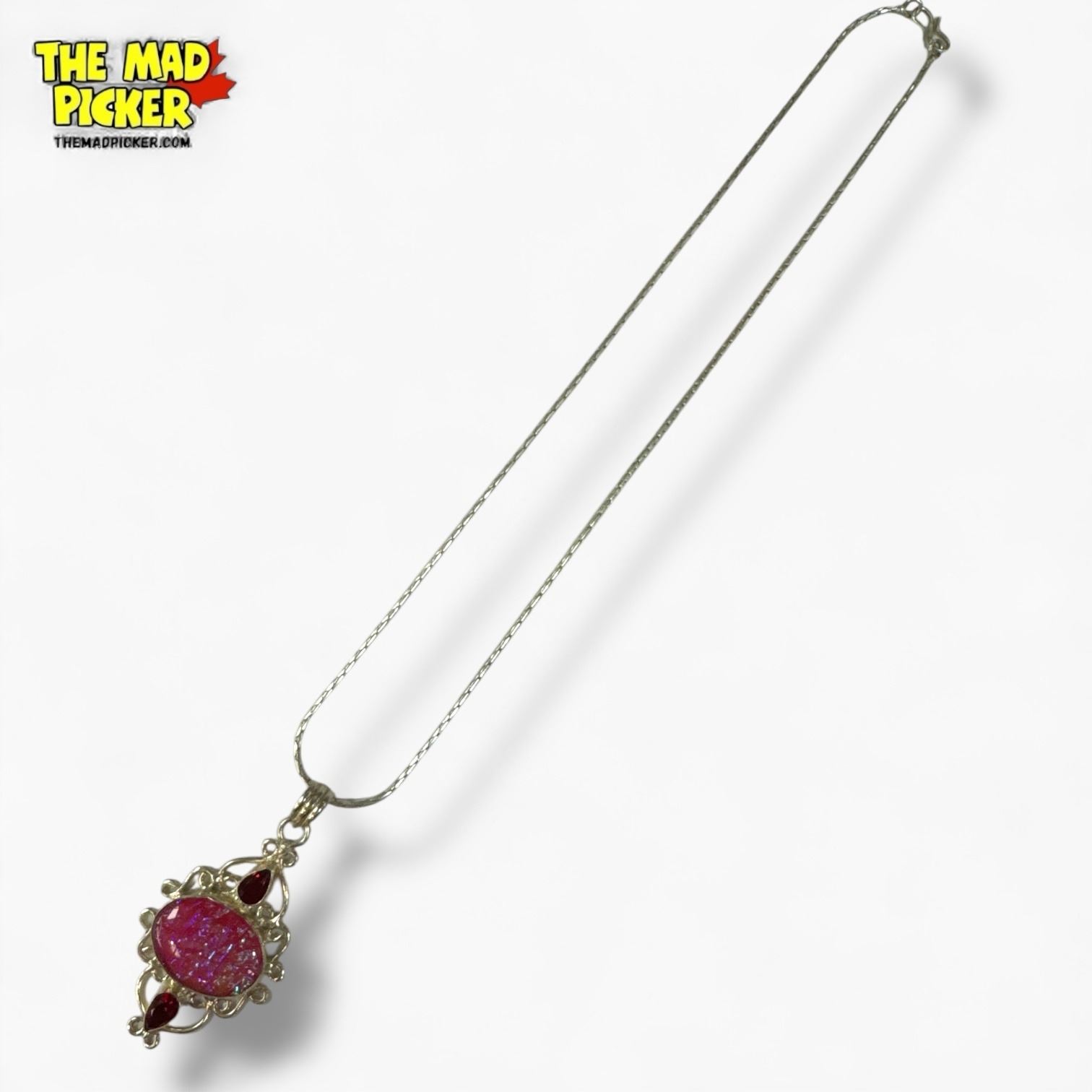 New Sterling Silver Pink Triplet Opal & Garnet Necklace - (36 x 54 mm pendant on 20" chain) - Total weight: 22 grams
