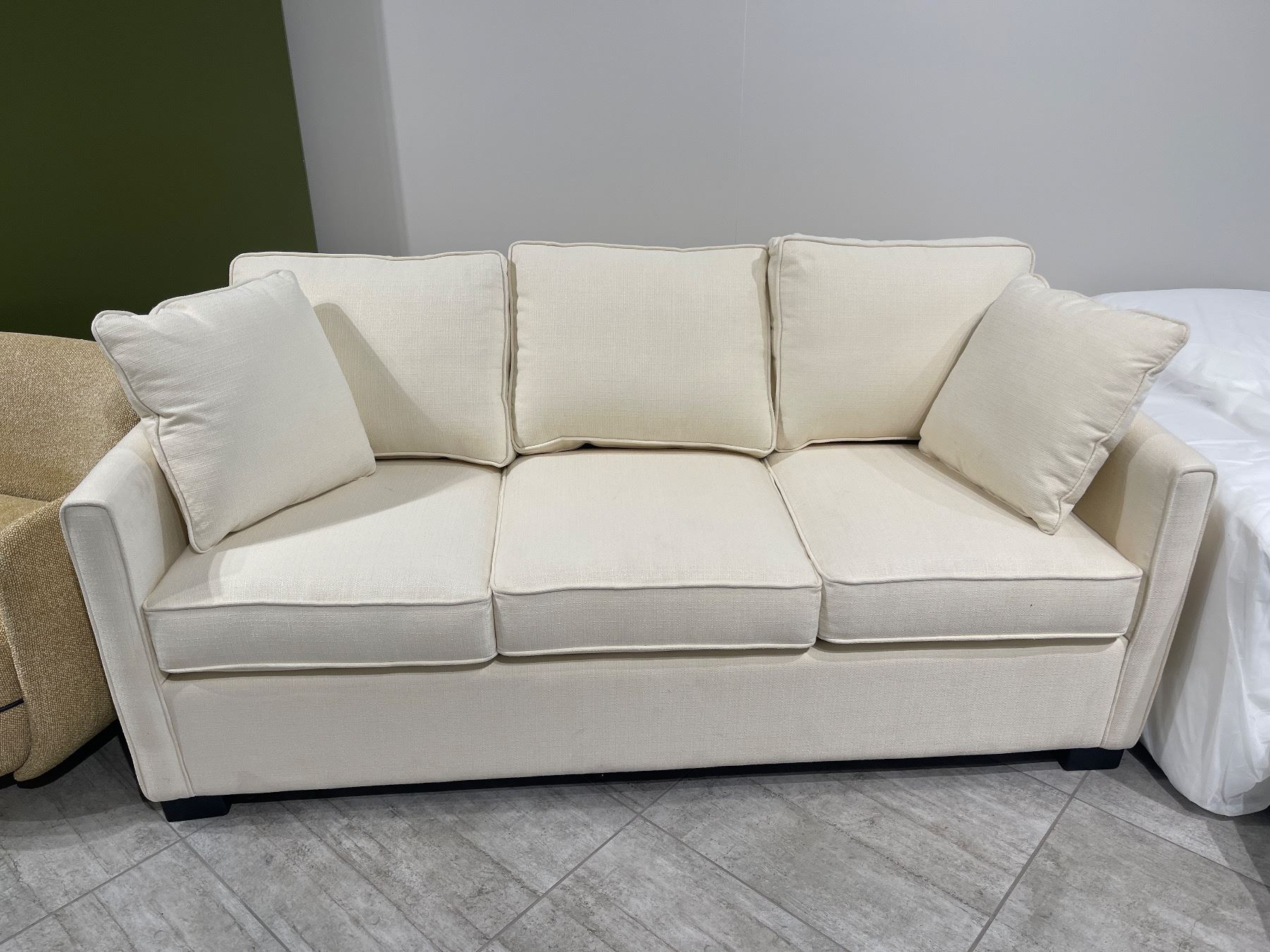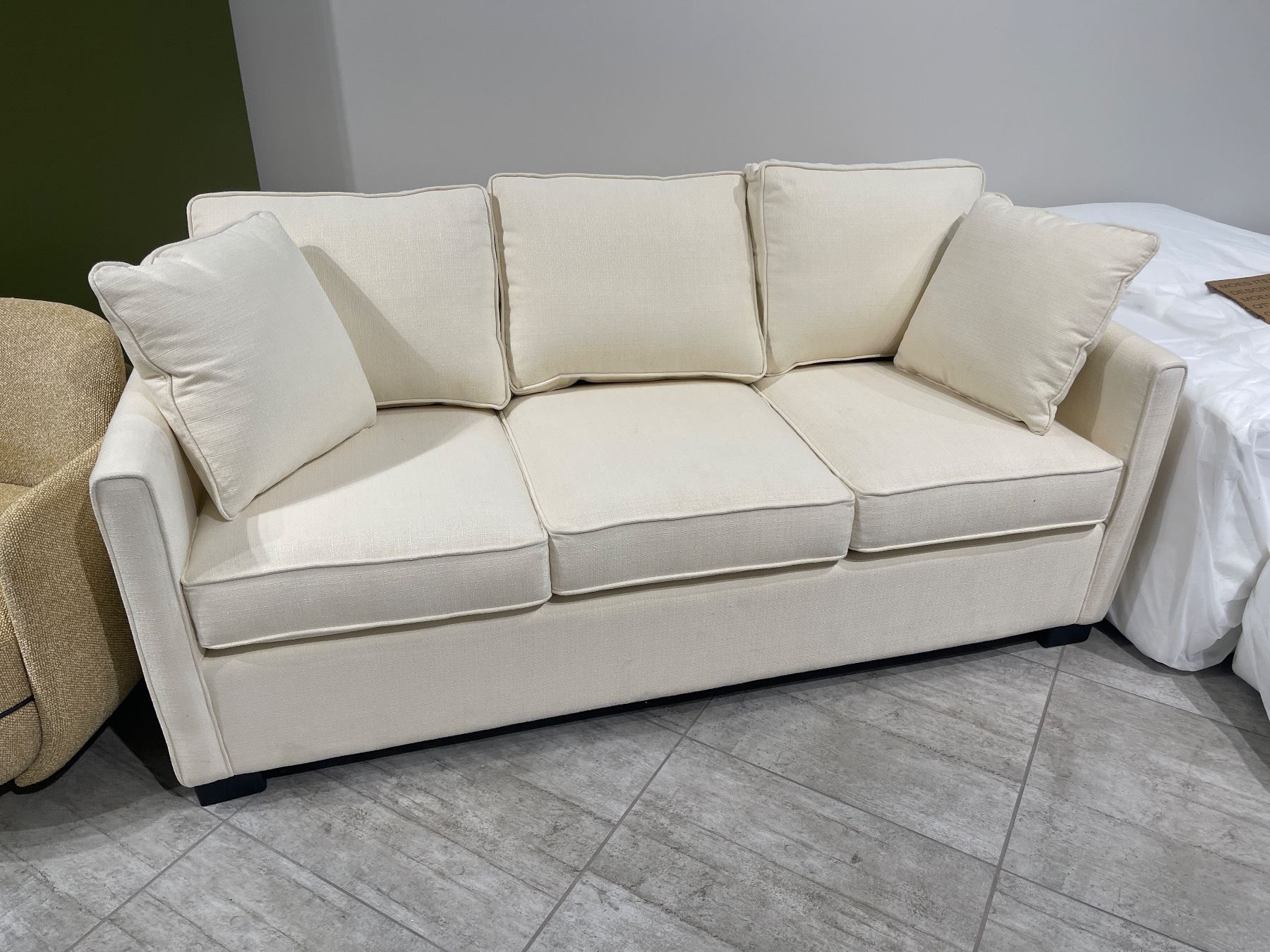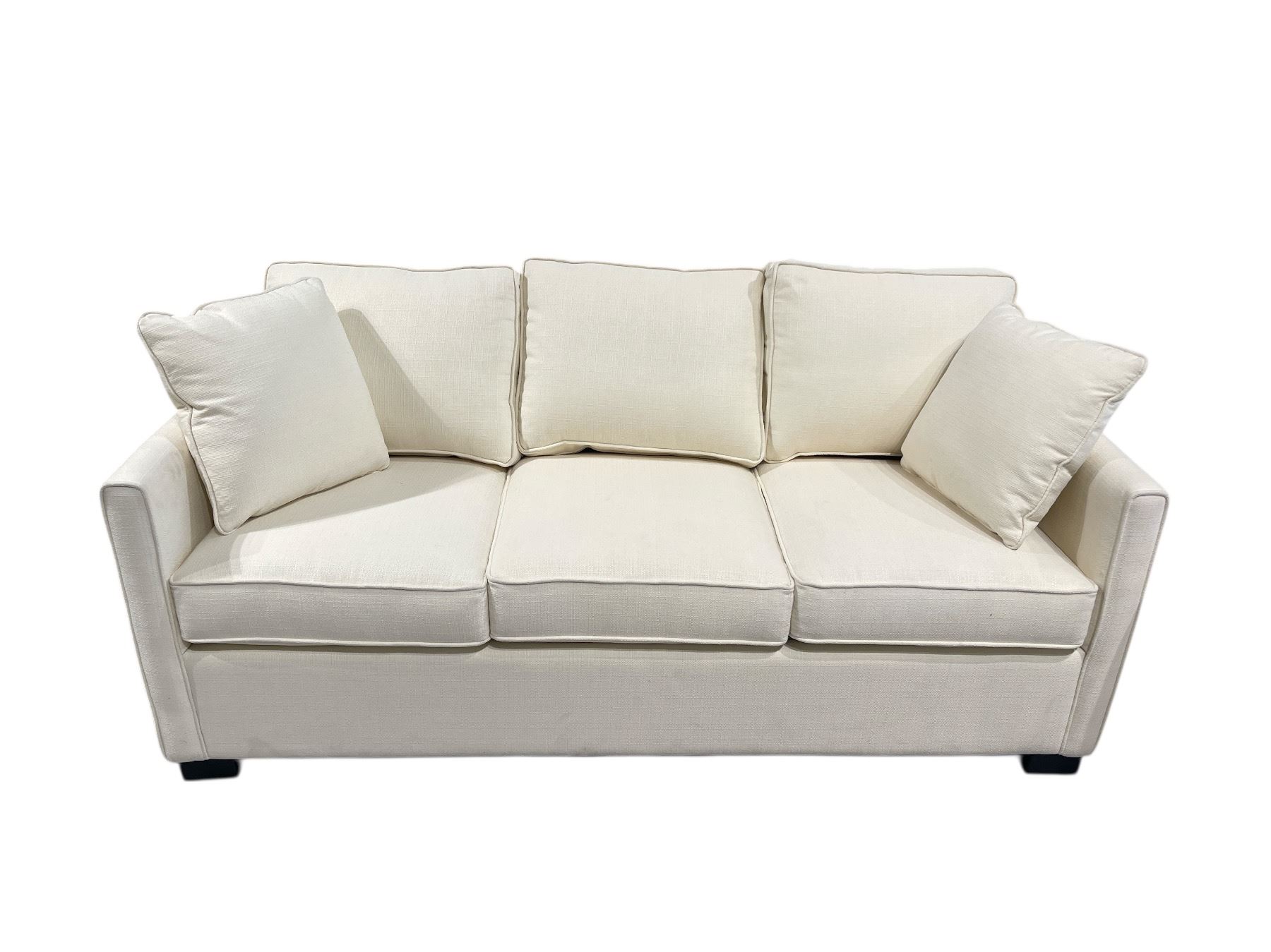 New Three-Seat Upholstered Sofa with Accent Pillows - Cream - 75" L x 36.5" W x 33" H