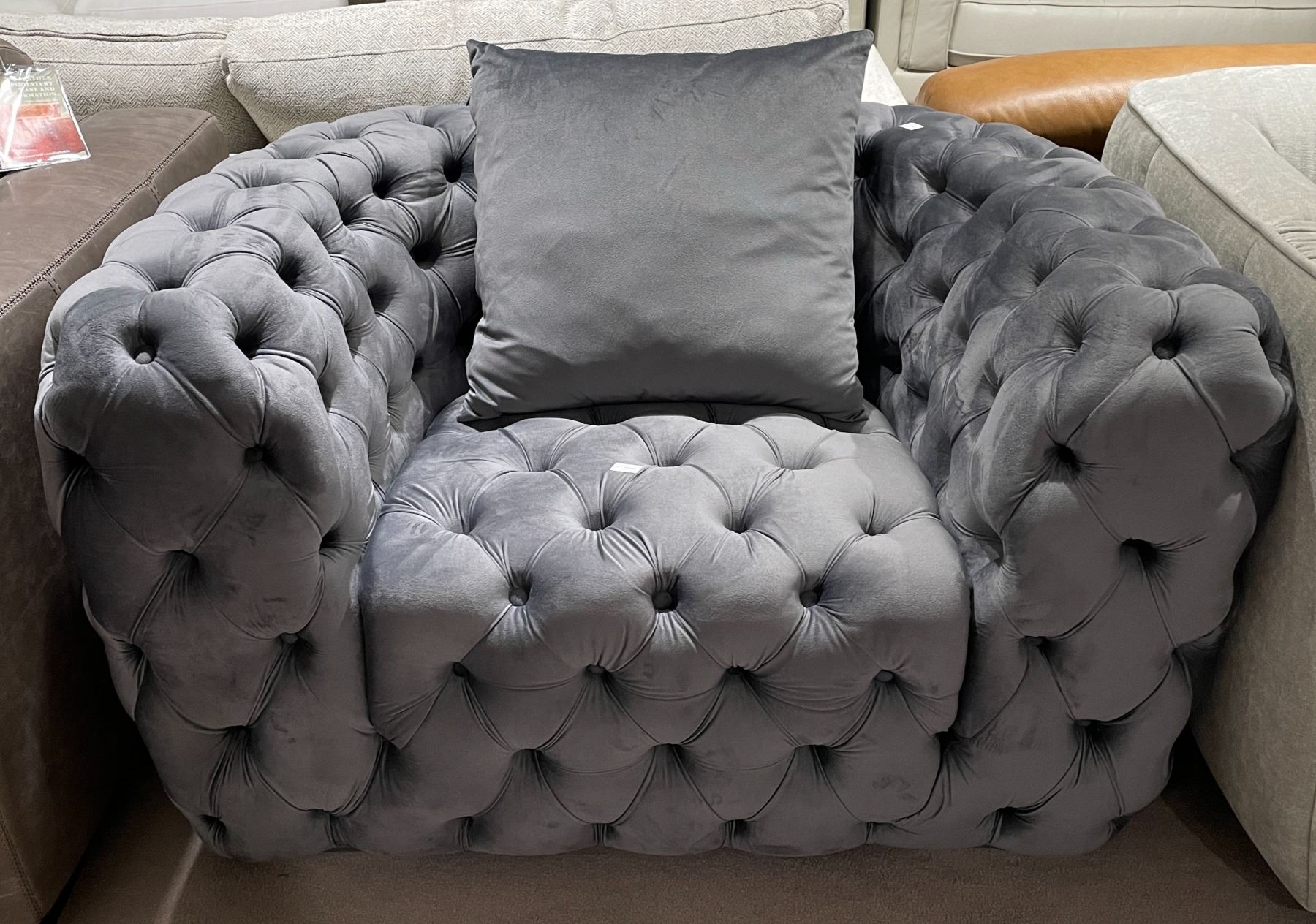 New - Tufted Fabric Chair - Grey - Retail Price: $1299, H26" x W46" x 33"