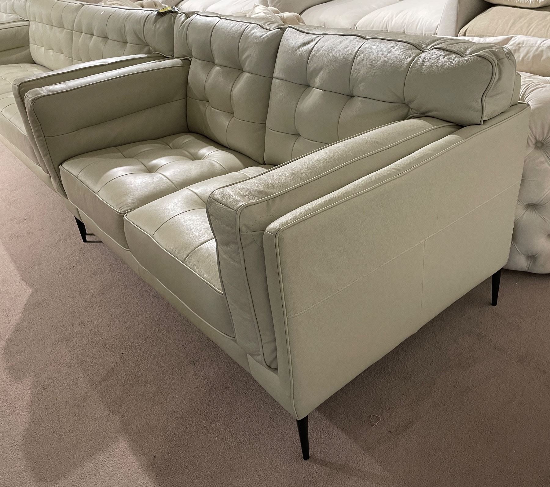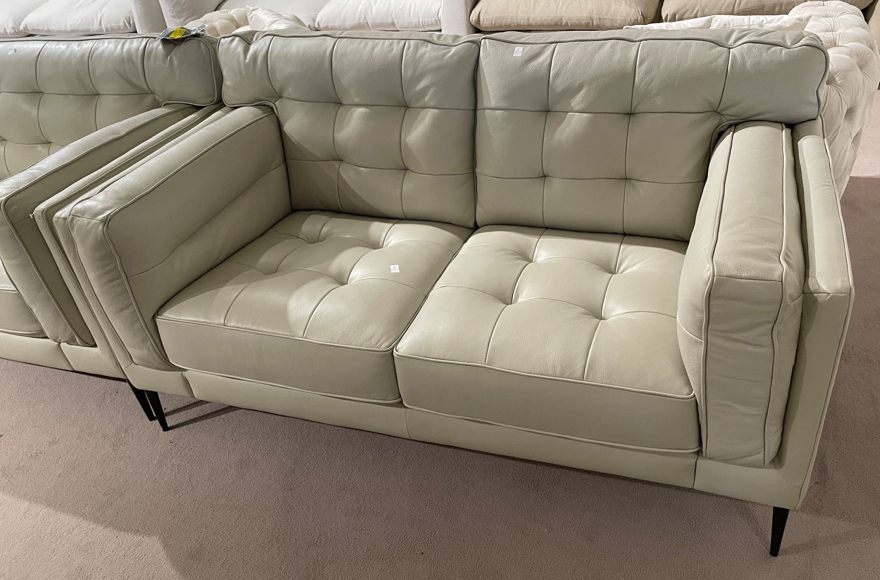 New - Tufted Leather Loveseat - Light Grey - Retail Price: $4,289 - W63" x D34" - 33238ZB-LMF2-2P