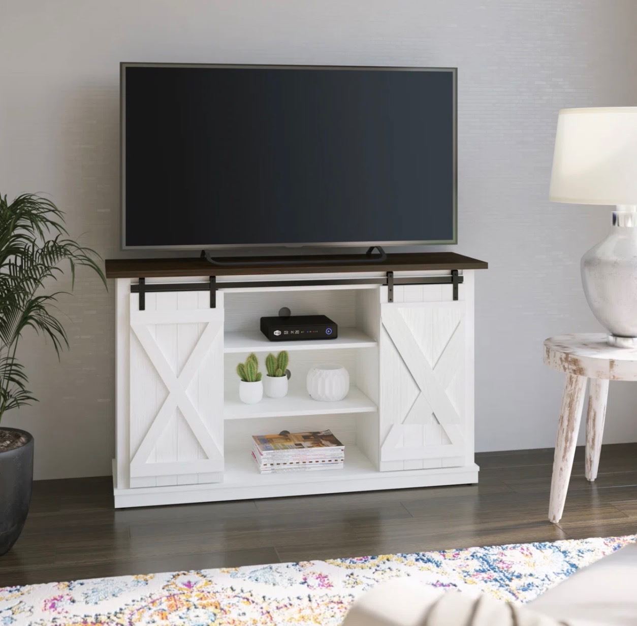 New in Box Twin Star Home Sliding Barn Door Farmhouse TV Stand - RV: $350 CAD (TC64-61271-TPG03)
