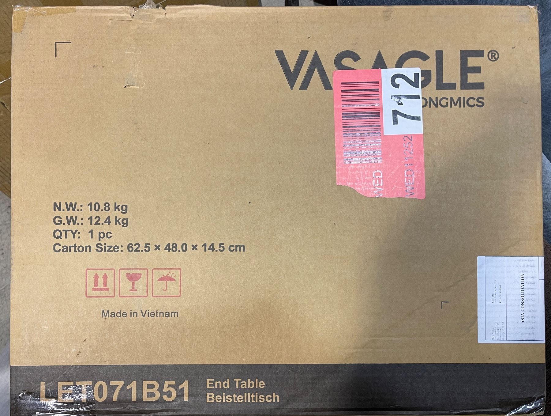 New in Box VASAGLE Nightstand (LET071B51)