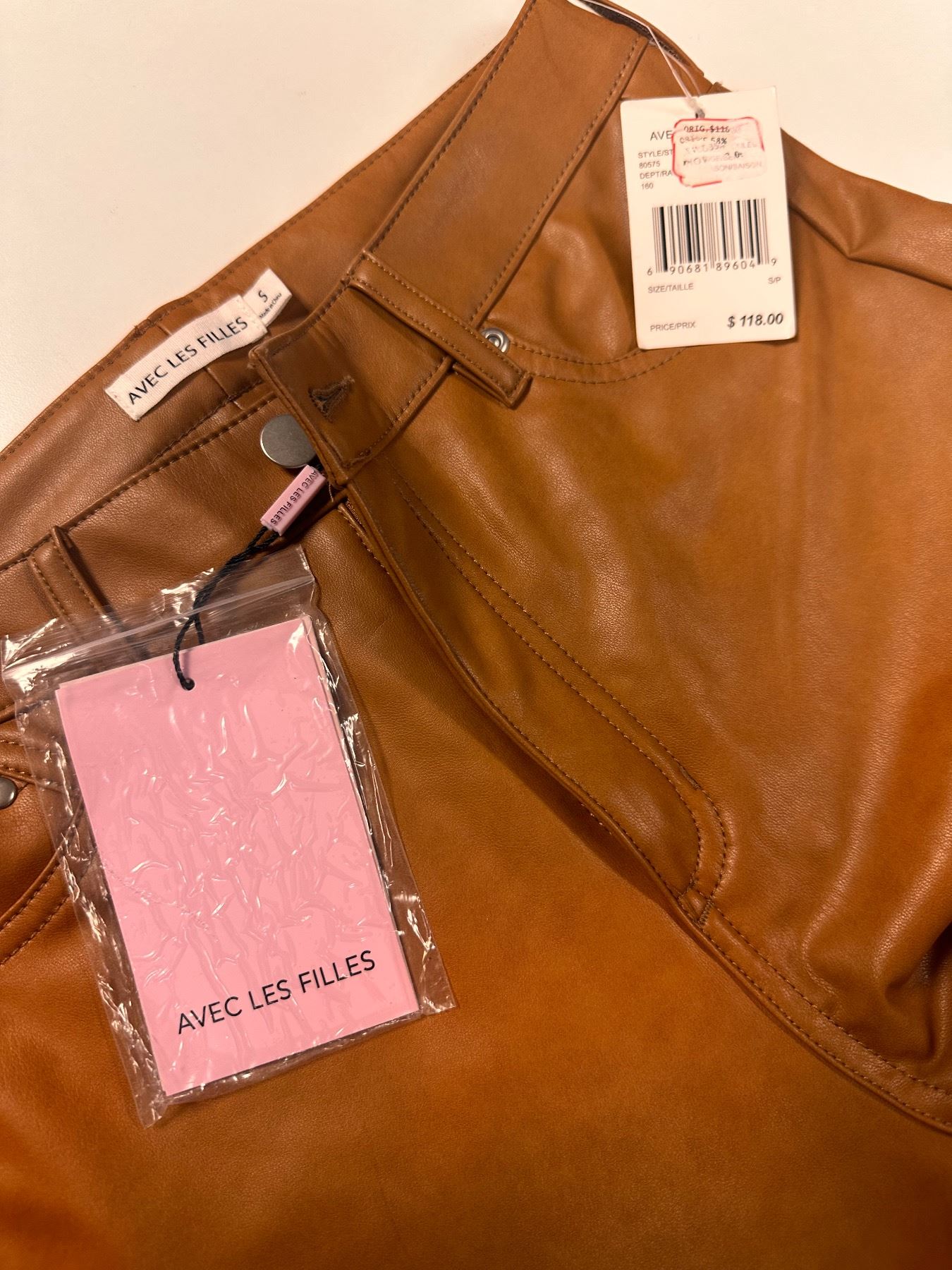 New w/Tags Avec Les Filles Brown Pleather Pants Size S Retail $118
