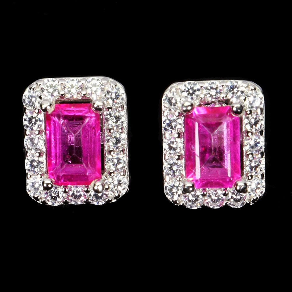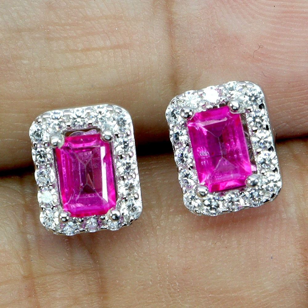 OCTAGON CUT 6X4 mm PINK TOPAZ EARRINGS IN 14K WHITE PLATED GOLD OVER 925 STERLING SILVER - APPRAISED REPLACEMENT VALUE CAD 770