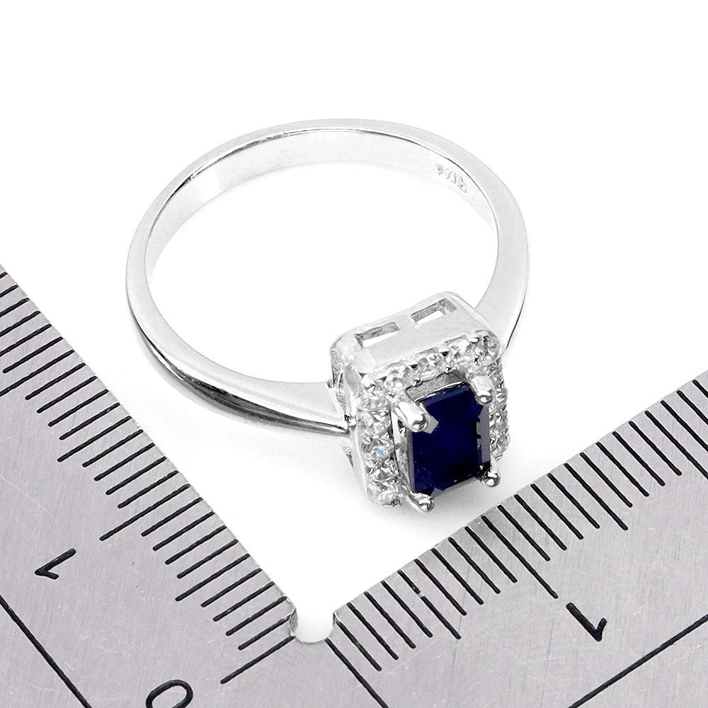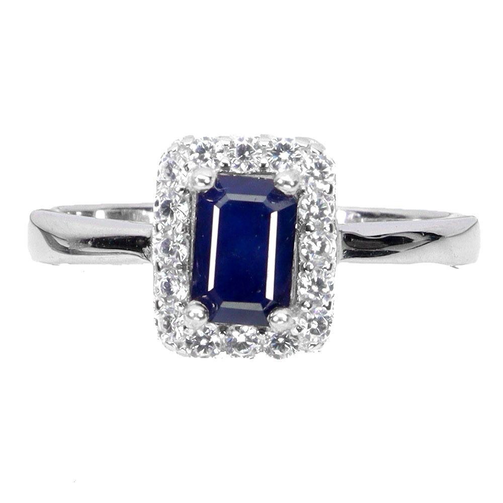 OCTAGON CUT 9X8 mm BLUE SAPPHIRE RING IN 14K WHITE GOLD PLATED OVER 925 STERLING SILVER - SIZE 8 - APPRAISED REPLACEMENT VALUE CAD 615
