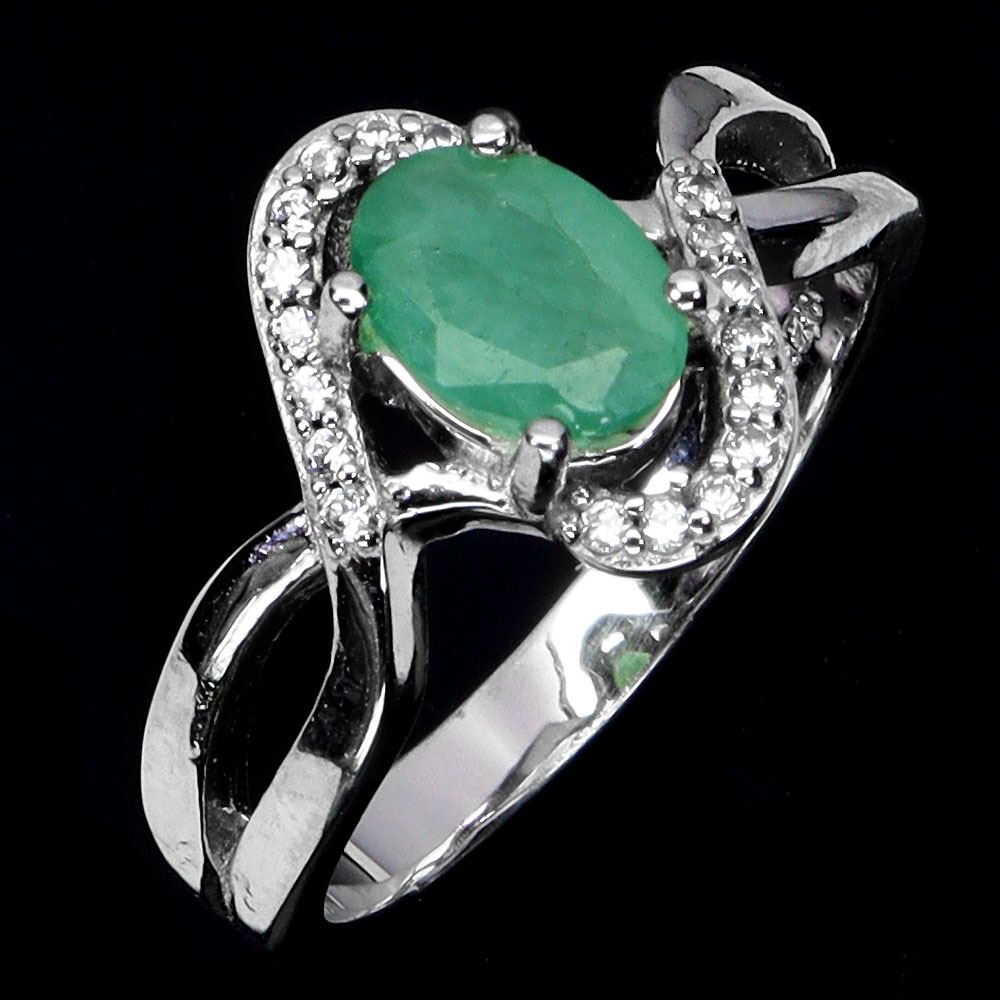 OVAL 7X5 mm EMERALD RING IN 14K WHITE PLATED GOLD OVER 925 STERLING SILVER - SIZE 7 - APPRAISED REPLACEMENT VALUE CAD 720