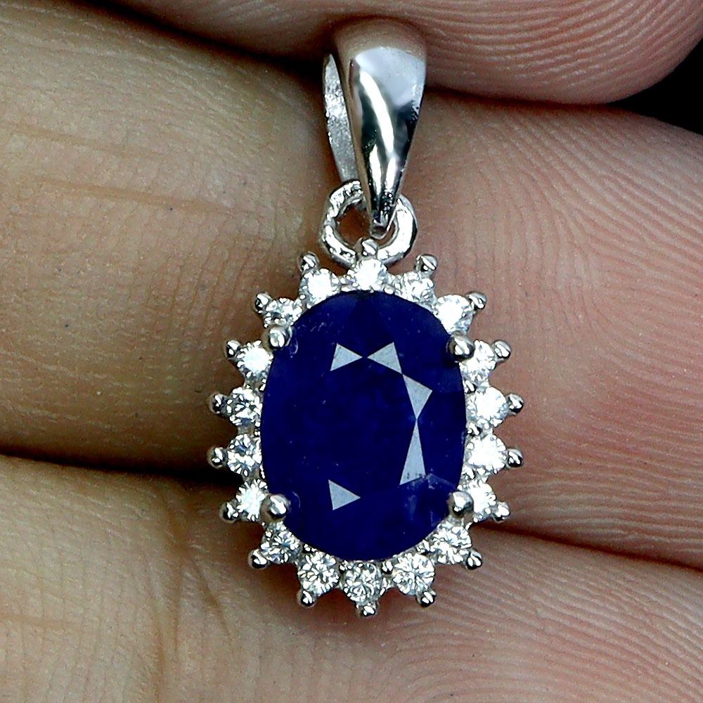 OVAL BLUE SAPPHIRE PENDANT IN 14K WHITE PLATED GOLD OVER 925 STERLING SILVER - APPRAISED REPLACEMENT VALUE CAD 630