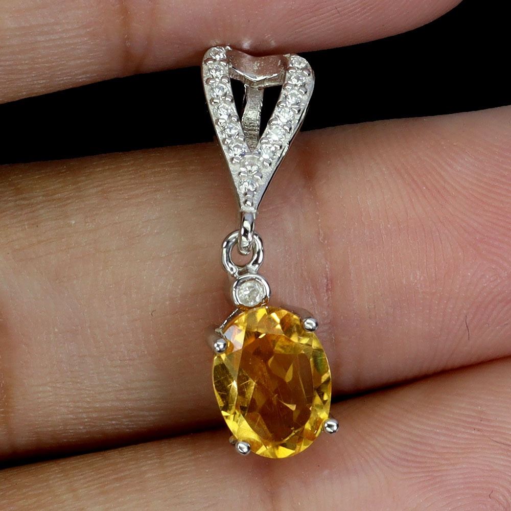 OVAL CITRINE 8X6 mm PENDANT IN 14K WHITE PLATED GOLD OVER 925 STERLING SILVER - APPRAISED REPLACEMENT VALUE CAD 400