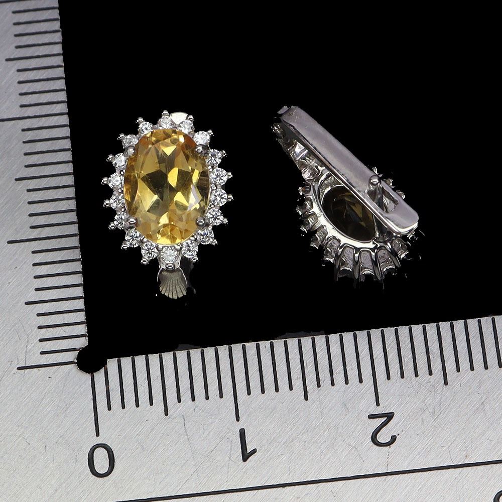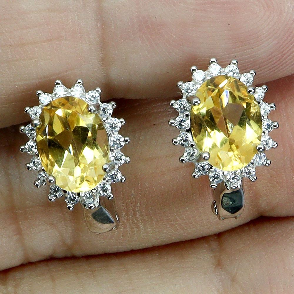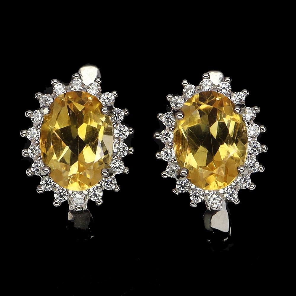 OVAL CUT 8X6 mm CITRINE EARRINGS IN 14K WHITE PLATED GOLD OVER 925 STERLING SILVER - APPRAISED REPLACEMENT VALUE CAD 800